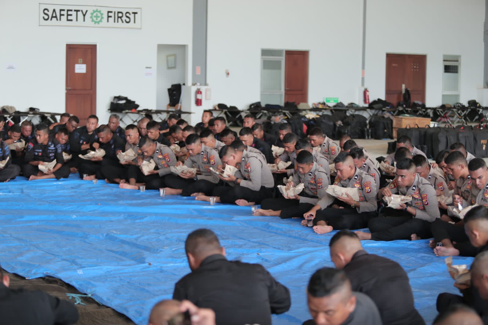 Sebelum duduk melantai bersama anggota untuk makan nasi bungkus, Kapolda Maluku terlebih dahulu memberikan arahan kepada para personil yang akan mengamankan kedatangan Orang nomor 1 di Republik Indonesia (RI 1).