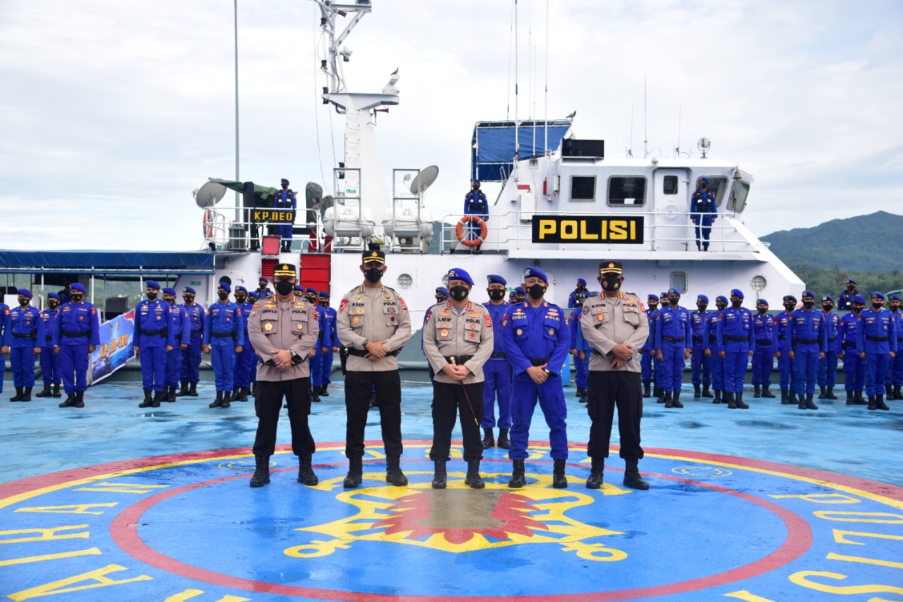 Orang nomor 1 Polda Maluku ini mengecek secara langsung kesiapan personil dan peralatan Polairud, untuk mendukung pemulihan pasca konflik di Pulau Haruku, dan kesiapan operasi SAR maupun operasi kemanusiaan lainnya.