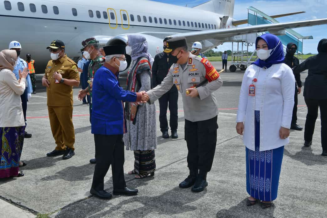 Wapres Ma’ruf Amin dan istri tiba di Ambon untuk transit di Bandara Pattimura. Ia bersama rombongan melakukan kunjungan kerja di wilayah Papua.