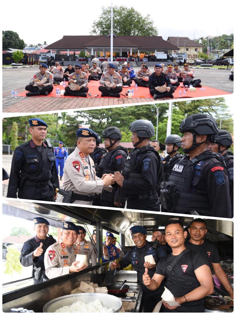 Setelah apel digelar, Kapolda dan Wakapolda Maluku bersama para PJU Polda Maluku makan siang bersama dengan para personel Satuan Brimob Polda Maluku. Mereka duduk bersila menyantap nasi bungkus yang langsung dimasak dari dapur lapangan Brimob Polda Maluku. (*