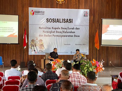 Hal itu dibuktikan dengan kehadiran Kapolres Kepulauan Tanimbar AKBP UMAR WIJAYA, S.I.K., M.H., dalam memberikan sosialisasi terkait Netralitas yang digelar Bawaslu Kabupaten Kepulauan Tanimbar, bertempat di Pendopo Bupati, Jl. Ir. Soekarno, Saumlaki, Kecamatan Tanimbar Selatan, Kabupaten Kepulauan Tanimbar, Jumat (15/11/24).