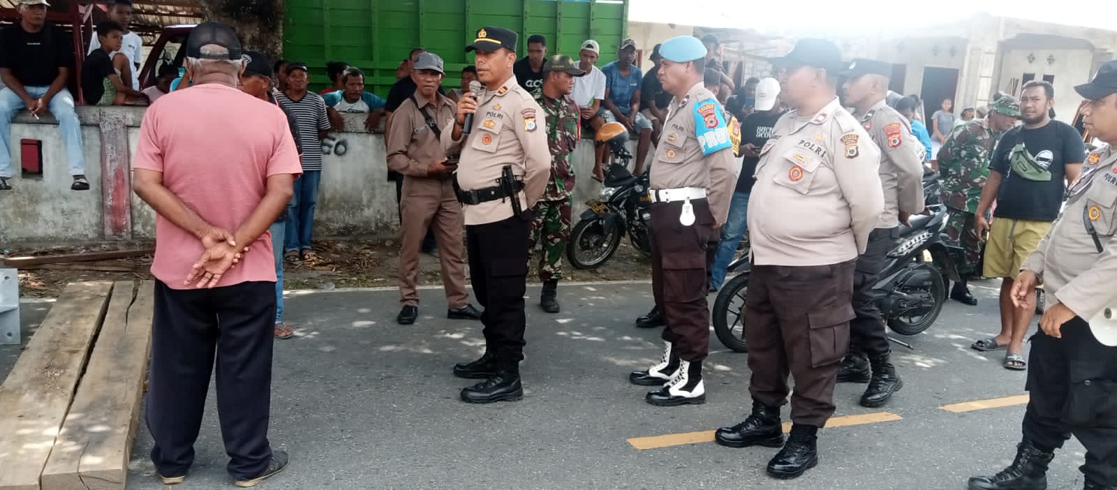 Tak lama berselang setelah palang jalan dilakukan, Kapolsek Kairatu, Iptu Aris, beserta sejumlah personelnya tiba di lokasi kejadian.