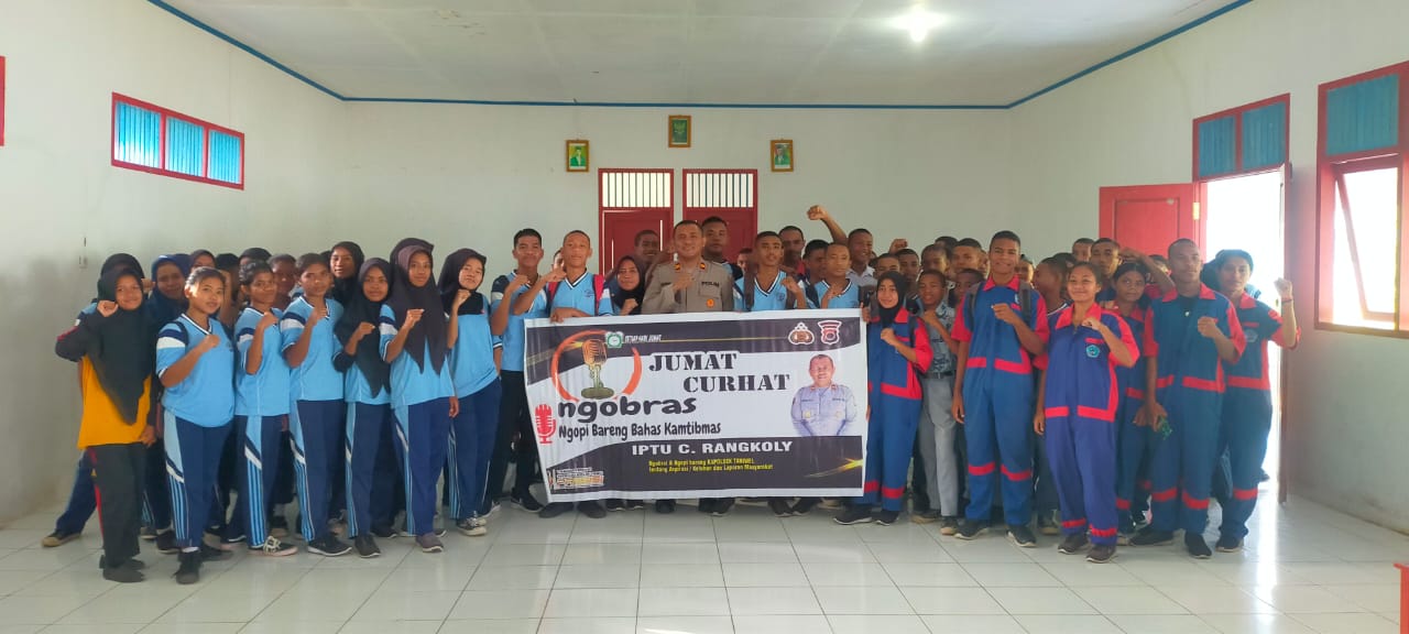 AMBON,MALUKUEXPRESS.COM-Kapolsek Taniwel IPTU C RANGKOLY, S.Si menggelar forum interaktif antara Kapolsek dan siswa-siswi untuk mendengar aspirasi, keluhan, serta laporan mereka dalam bentuk Kegiatan Jumat Curhat di SMK N 2 Taniwel, Kecamatan Taniwel, Kabupaten SBB,Jumat (24/11/2023)