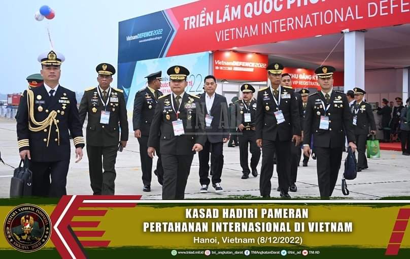 Malukuexpress.com, HANOI, Kepala Staf Angkatan Darat (Kasad) Jenderal TNI Dr. Dudung Abdurachman dalam kunjungan kerjanya ke Vietnam berkesempatan menghadiri Vietnam Defence Expo 2022 sebuah ajang pameran pertahanan internasional resmi yang diselenggarakan oleh Kementerian Pertahanan Vietnam di Gia Lam Airport, Hanoi. Kamis, (8/12/2022).