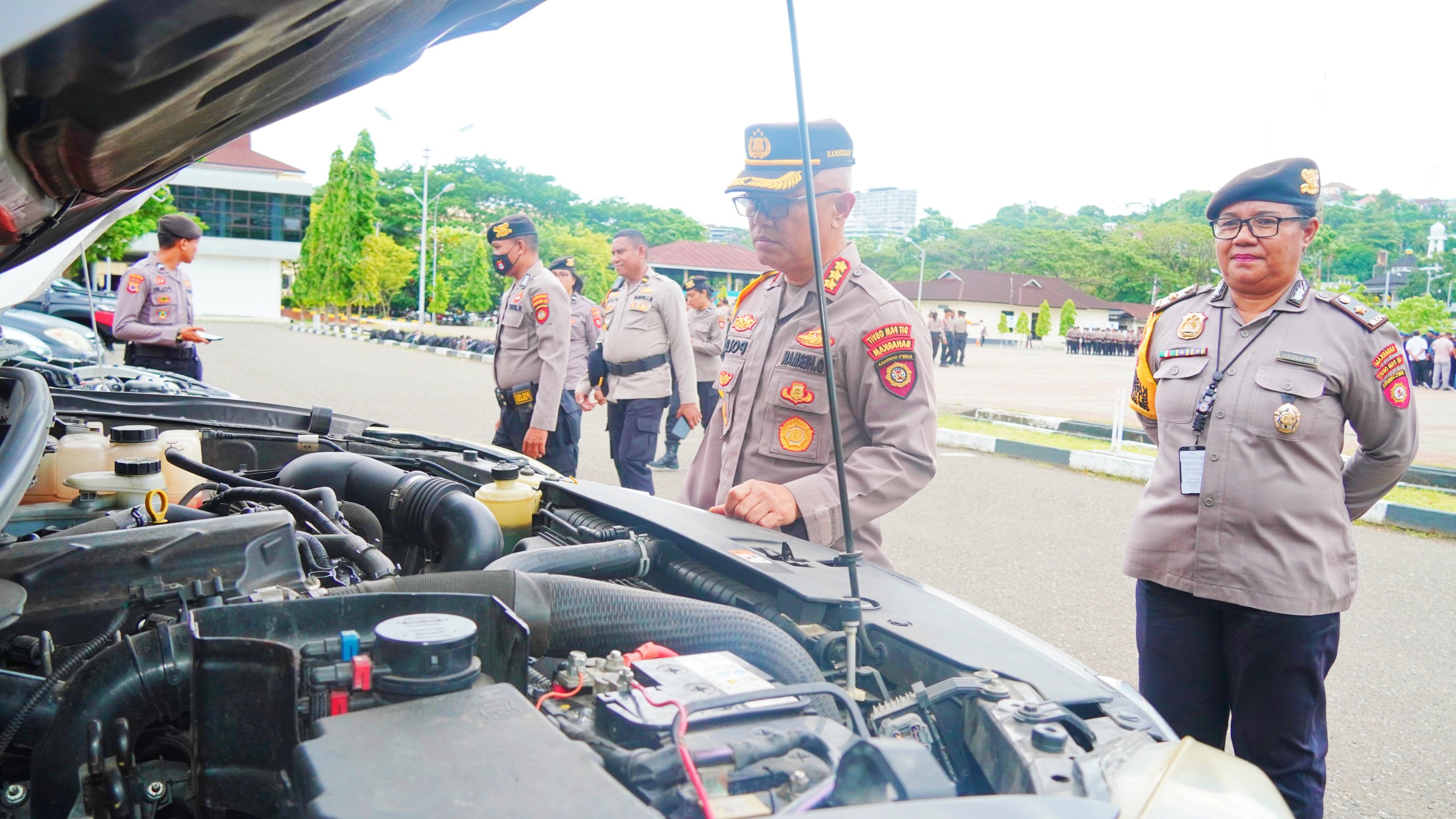 Selain memimpin apel, Kombes Wirdenis juga melakukan pengecekan terhadap perlengkapan yang akan digunakan personel seperti kendaraan taktis (rantis).
