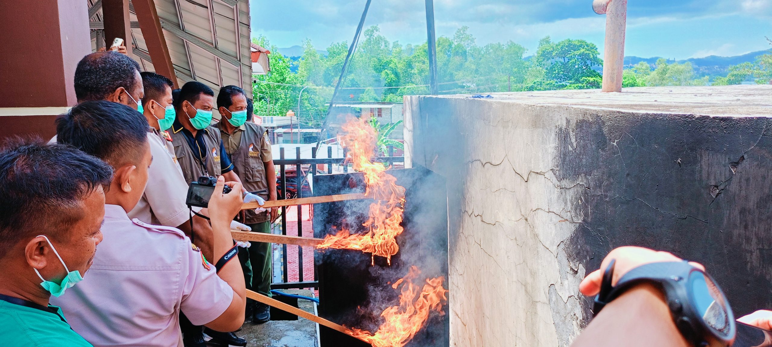 Dikatakanya barang bukti yang diserahkan dari Kejaksaan negri untuk dimusnakan seberat 1 ton (1,599,5) Kg, dan pelaku MK adalah salah satu warga di Seram Bagian Timur.
