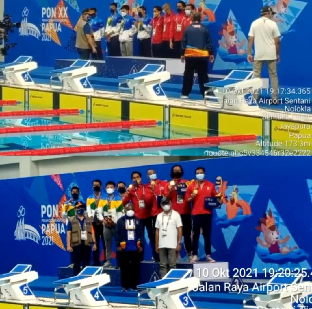 Malukuexpress.com, Kepala Badan Nasional Penanggulangan Bencana (BNPB) sekaligus Ketua Satuan Tugas (Satgas) Penanganan COVID-19, Letjen TNI Ganip Warsito yang diwakili Supervisor Subsatuan Tugas Protokol Kesehatan (Satgas Prokes) PON XX Kabupaten Jayapura, Marsekal Muda TNI Asep Chaeruddin berkesempatan untuk mengalungkan medali kepada para juara pada nomor pertandingan Renang Estafet 4×200 meter putra. Nomor pertandingan bergengsi tersebut digelar pada Minggu (10/10) di GOR Aquatic, Kompleks Stadion Utama Lukas Enembe, Kabupaten Jayapura.