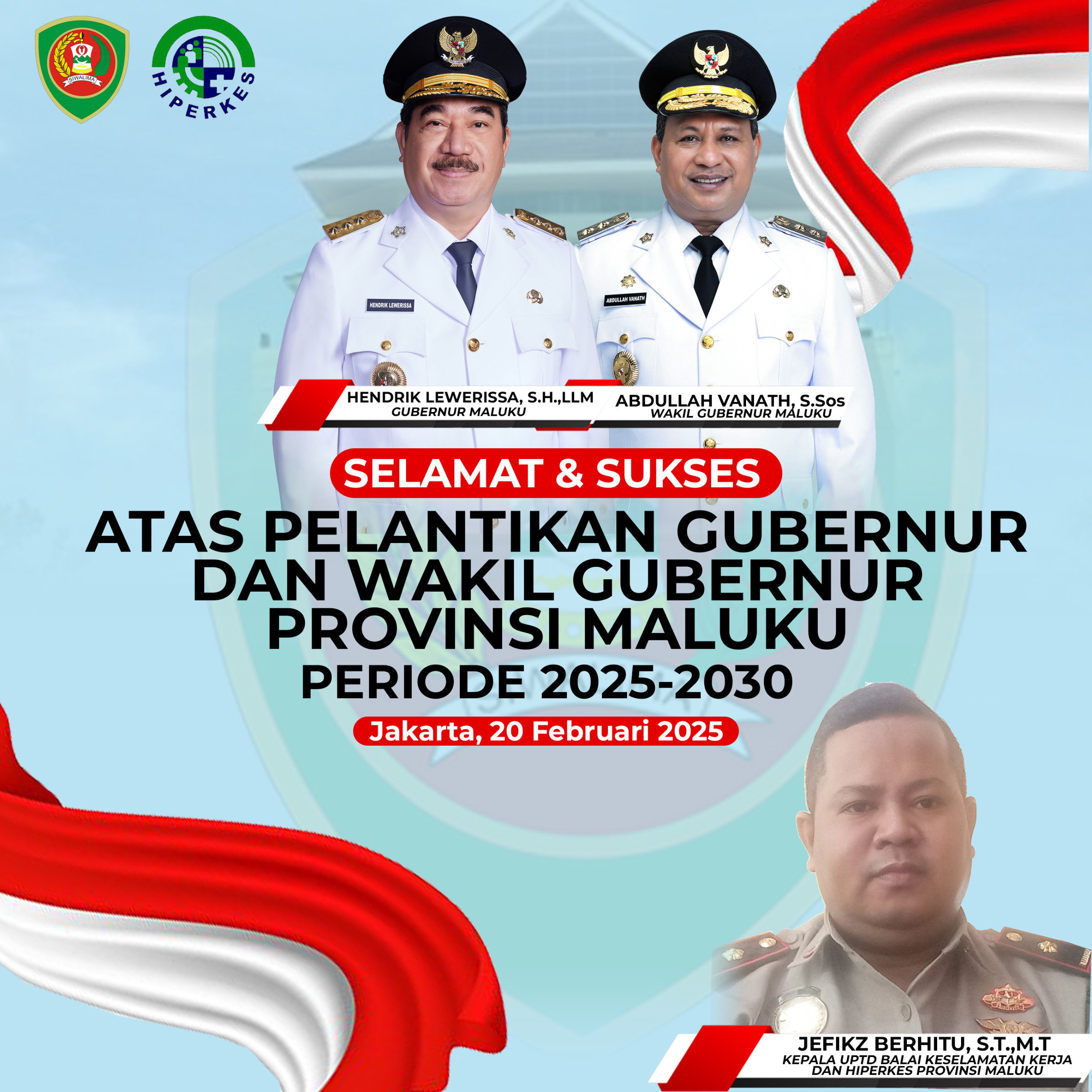 Kepala UPTD Balai Keselamatan Kerja dan Hiperkes Provinsi Maluku Jefikz Berhitu, S.T.,M.T Mengucapkan Selamat Atas Dilantiknya Bapak Hendrik Lewerissa, S.H., LL.M dan Bapak Abdullah Vanath, S.Sos Sebagai Gubernur dan Wakil Gubernur Maluku Masa Bakti 2025-2030