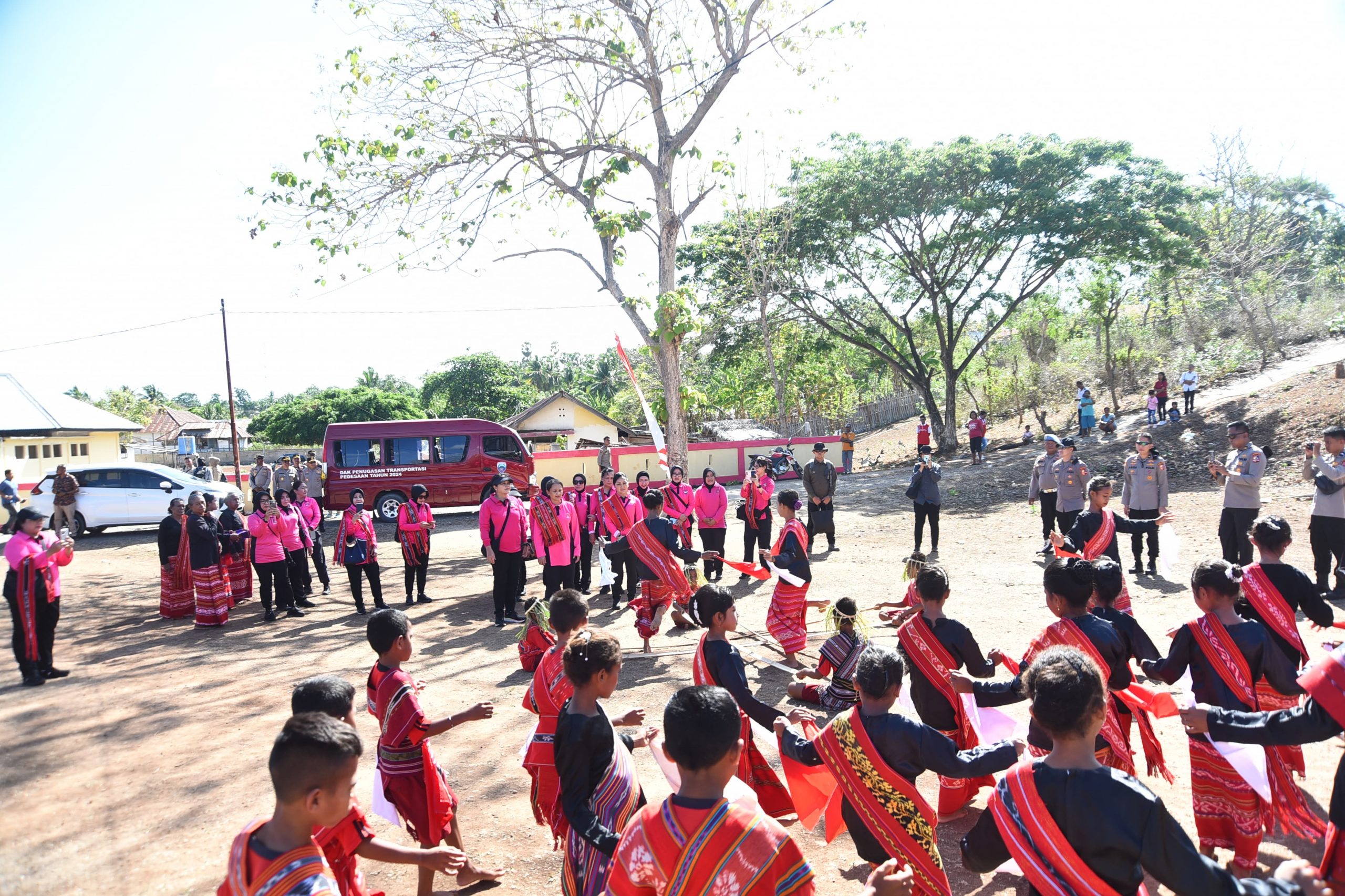 Bantuan sosial yang diserahkan dalam rangkaian kegiatan Bhayangkari Peduli ini berlangsung di lapangan Nuslettu Railetti, Desa Serwaru, Kabupaten MBD.