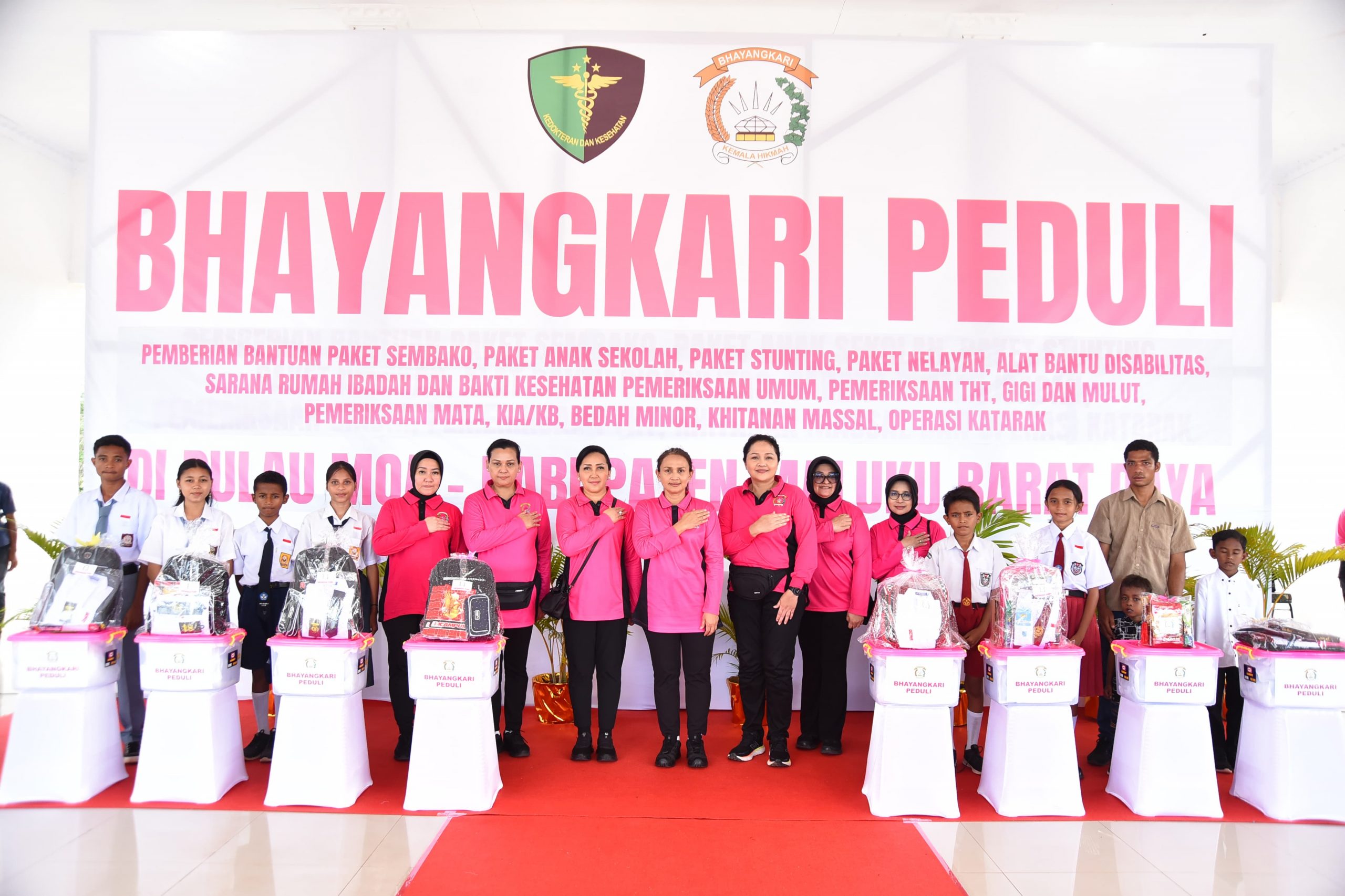 Turut hadir dalam kegiatan itu yakni Direktur Binmas, Direktur Polairud, Direktur Resnarkoba, dan Kabid Dokkes Polda Maluku. Hadir pula Kapolres MBD beserta Ketua Bhayangkari Cabang MBD, dan Pengurus Bhayangkari setempat.