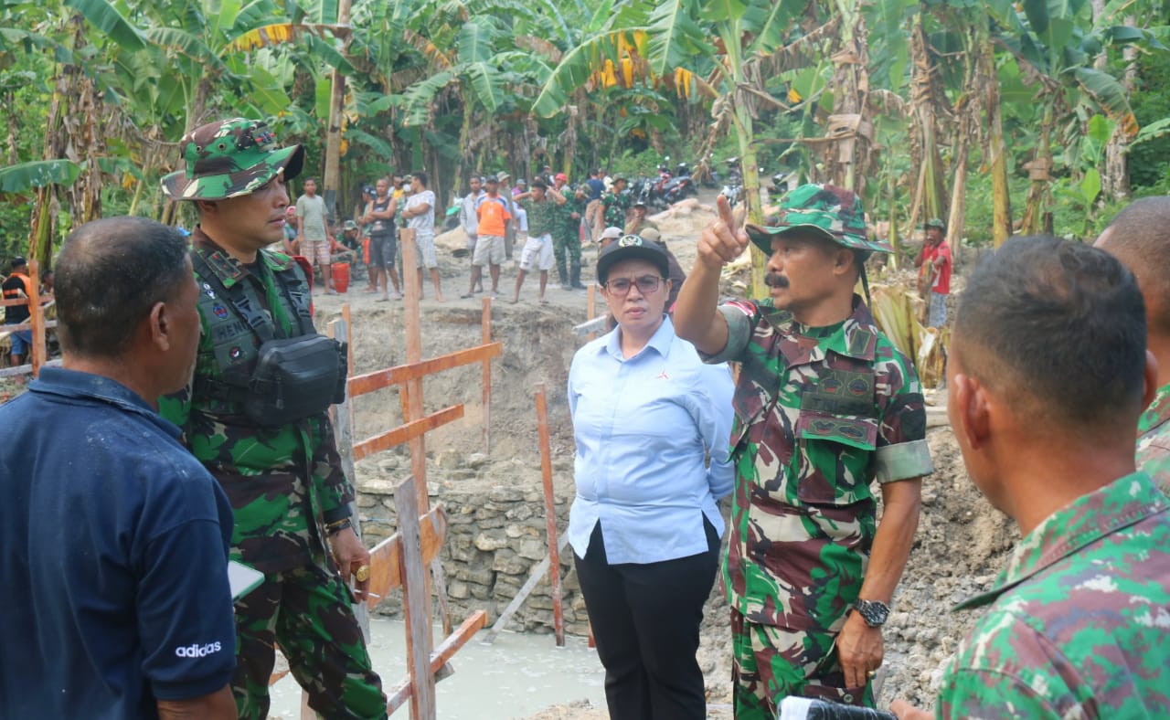 MALUKUEXPRESS.COM, Atubul Dol – Ketua DPRD Kabupaten Kepulauan Tanimbar, Denny Darling Rufualu, S.Pd.K. meninjau pelaksanaan pembangunan jembatan program TNI Manunggal Membangun Desa (TMMD) Ke-117 yang dikerjakan Satgas TMMD Kodim Saumlaki di Desa Atubul Dol, Kecamatan Wertamrian, Kabupaten Kepulauan Tanimbar, Kamis (20/7/2023).