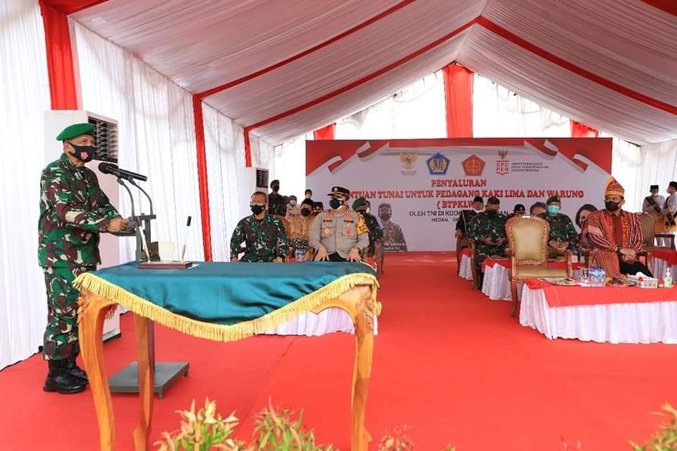 Untuk itu, bantuan akan disalurkan tunai untuk Pedagang Kaki Lima dan Warung (BTPKLW) melalui TNI sesuai program pemerintah dalam upaya untuk mengatasi dampak Covid-19 secara menyeluruh kepada masyarakat.