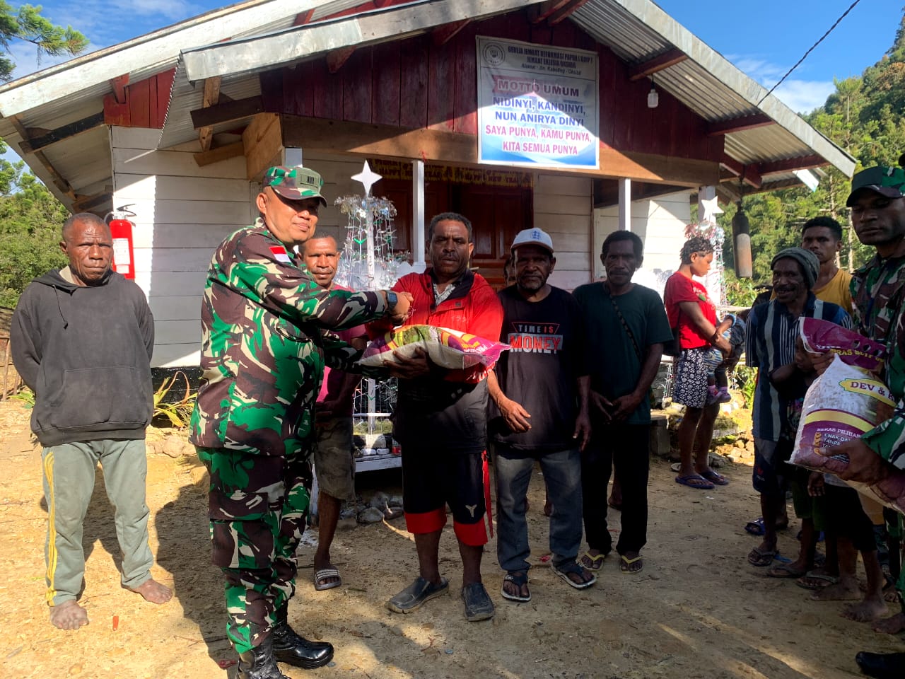 “Ini sebagai ketulusan dan kepedulian kami terhadap sesama umat beragama dan merasa berkewajiban untuk saling kerja sama untuk kedamaian di tanah Pegunungan Bintang, jangan dilihat nilainya”, ungkap Pabung.