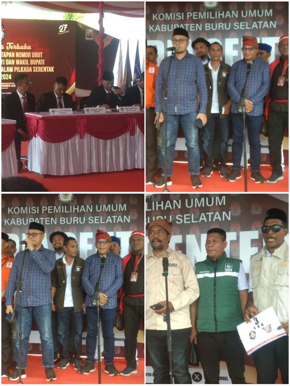 Rapat pleno di pimpin oleh ketua KPU Buru Selatan Husni Hehanusa didampingi empat komisioner lainnya. Berdasarkan hasil pengundian nomor urut pasangan La Hamidi- Gerson Elieser Selsily ( LHM- GES) mendapatkan nomor urut 1. Kemudian, pasangan Abdul Haris Wally- Elisa Ferianto Lesnussa (Walinusa) mendapatkan nomor urut 2. Sementara pasangan Safitri Malik Soulisa- Beno Hempri Lesnussa (SAH) mendapatkan nomor urut 3.