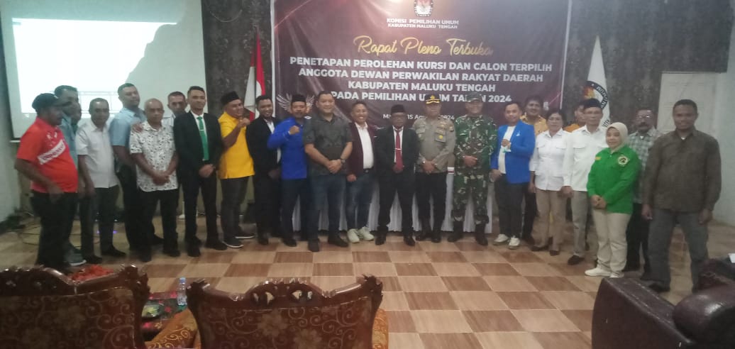 Malukuexpress.com, Masohi – Komisi Pemilihan Umum (KPU) Kabupaten Maluku Tengah (Malteng), resmi menetapkan perolehan kursi Partai Politik (Parpol) dan calon legislatif (Caleg) terpilih pada Pemilihan Umum (Pemilu) 2024.