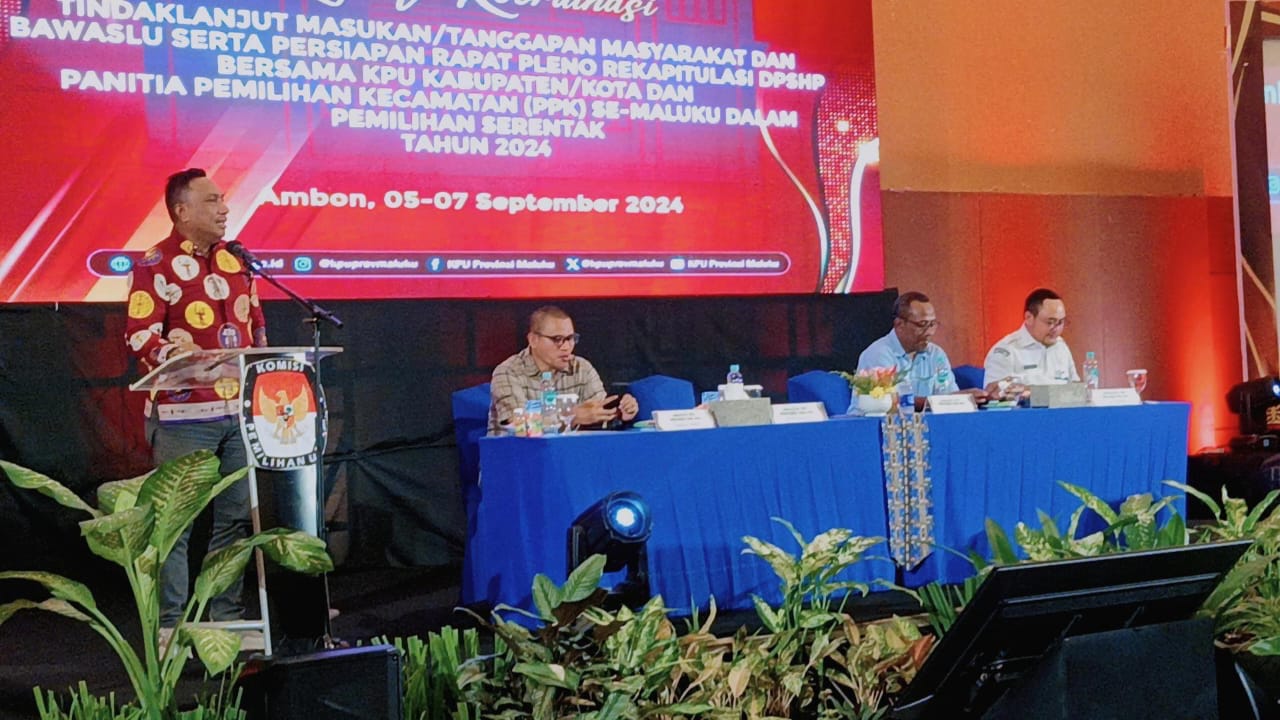 MALUKUEXPRESS.COM, Rapat Koordinasi Tindak Lanjut Masukan/Tanggapan Masyarakat dan Bawaslu serta persiapan Rapat Pleno Rekapitulasi DPSHP Pilkada Serentak Tahun 2024. Berlangsung di Hotel The Natsepa. Kamis 5-7 September 2024.