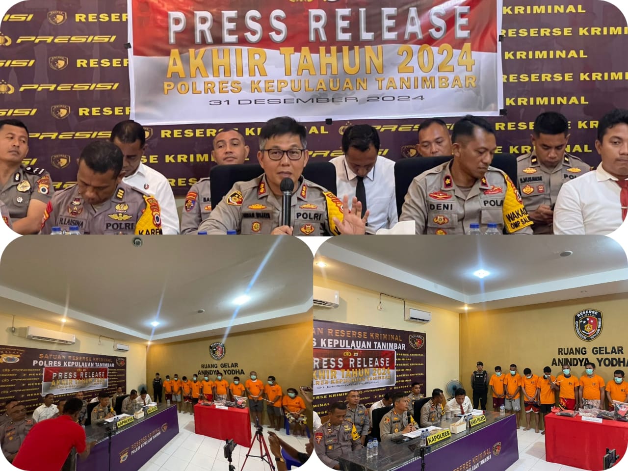Saumlaki, Malukuexpress.com – Polda Maluku, Kepolisian Resor Kepuluan Tanimbar, Menjelang akhir Tahun 2024, Polres Kepulauan Tanimbar menggelar Pers Release akhir Tahun yang berlangsung di Ruang Gelar Anindya Yodha Satuan Reskrim Polres Kepulauan Tanimbar, Selasa (31/12/24) pagi.