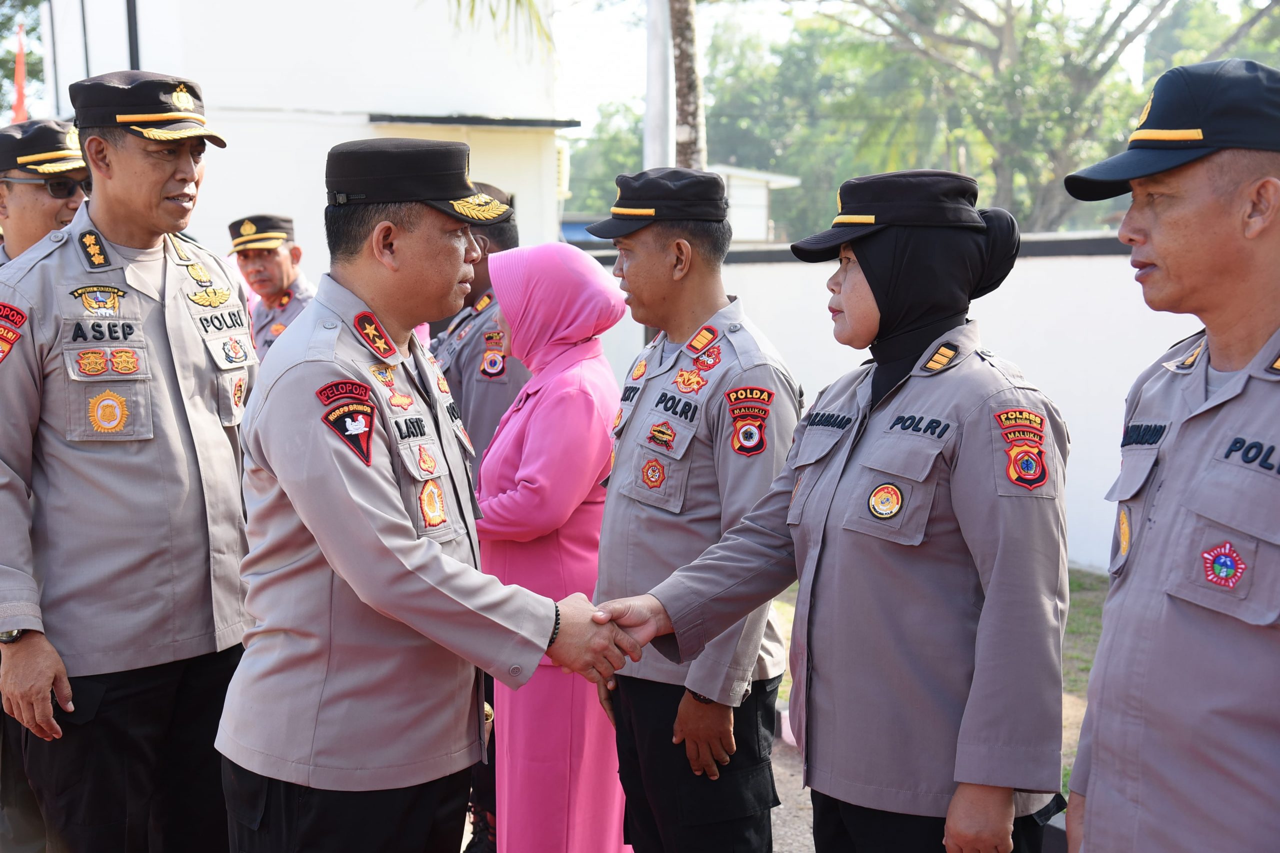 Setelah mengambil apel, Kapolda dan rombongan kemudian menuju aula Parama Satwika. Ia juga menyapa personel Polres SBT.