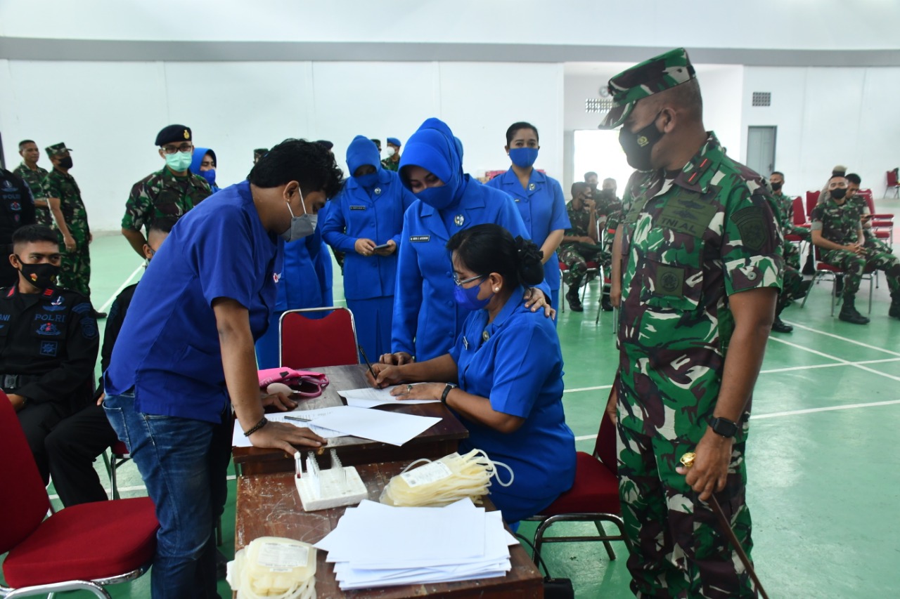 Donor darah dalam rangka perayaan Natal tahun 2021 mempunyai target 50 kantong darah dengan peserta dari Personel Lantamal IX,