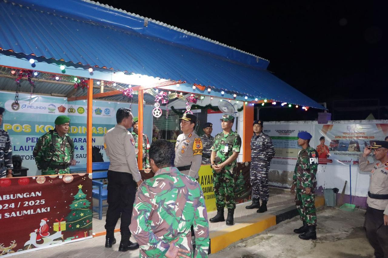 Saumlaki, Malukuexpress.com– Polda Maluku, Kepolisian Resor Kepuluan Tanimbar, Dalam menyambut pergantian Tahun, Kapolres Kepulauan Tanimbar AKBP UMAR WIJAYA, S.I.K., M.H., bersama Forum Koordinasi Pimpinan Daerah (Forkopimda) melakukan monitoring pada Pos Pengamanan dan Pos Pelayanan.