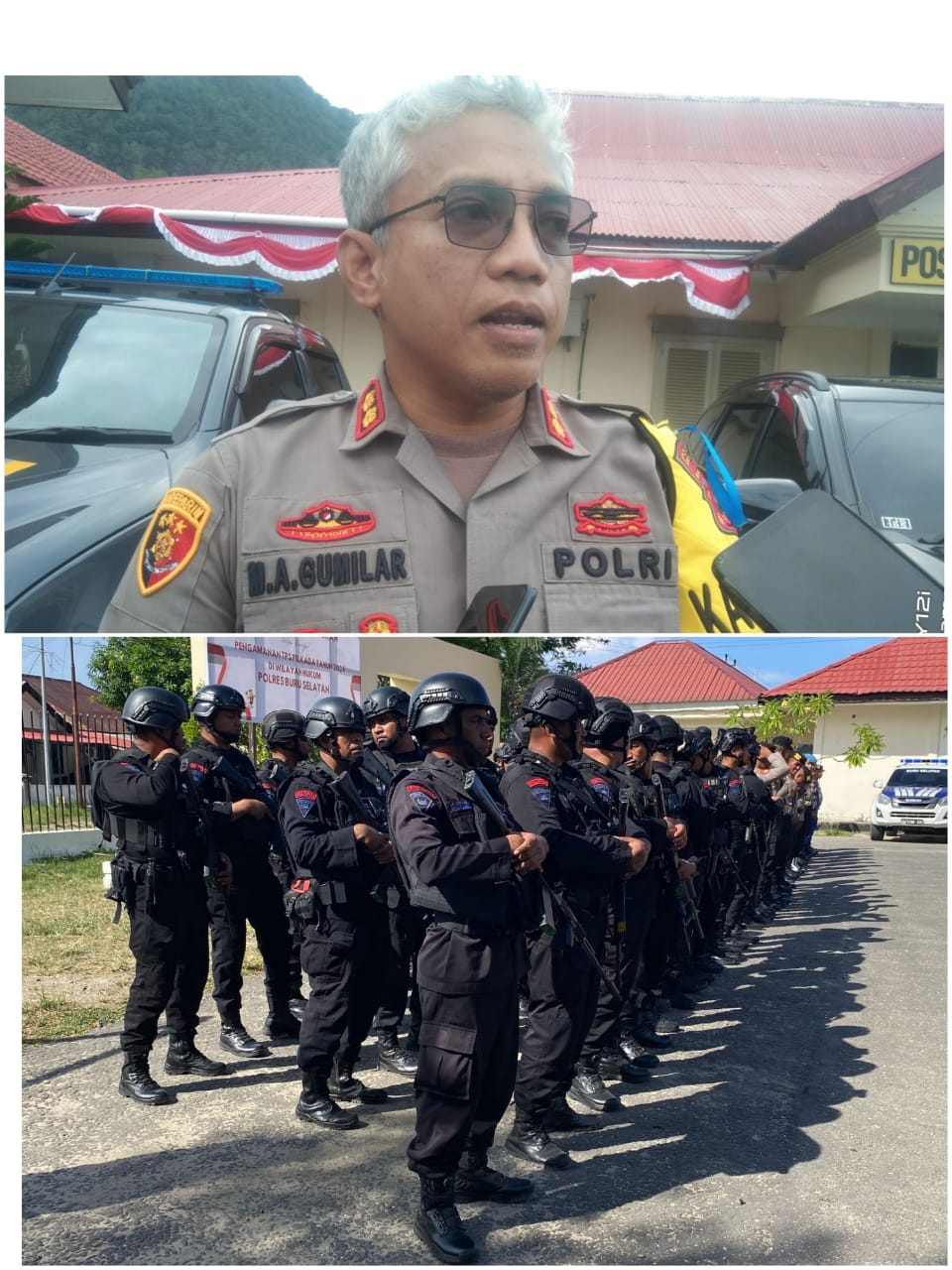 “Saya mengucapkan apresiasi dan ucapan terima kasih kepada rekan-rekan yang telah membantu pelaksanaan pengamanan Pilkada serentak di Kabupaten Buru Selatan, dengan kerja keras kita berhasil menjaga situasi tetap aman dan kondusif,” ujar Kapolres