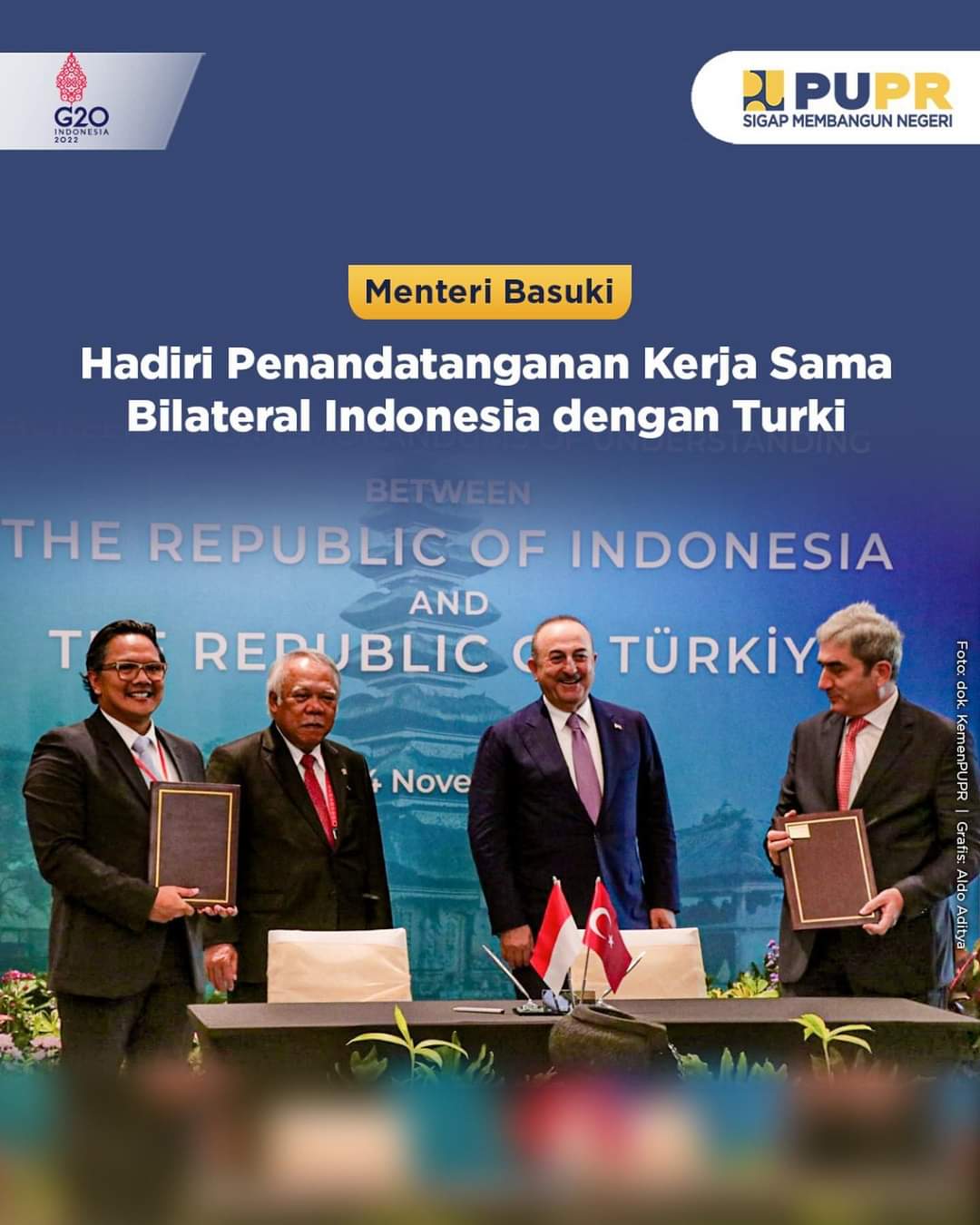 Malukuexpress.com, Dalam rangka penyelenggaraan G20 dan B20 di Bali, Menteri Basuki menjadi saksi penandatanganan kontrak kerja sama antara Pemerintah Indonesia dengan Pemerintah Turki di Nusa Dua, Bali, pada Senin (14/11).
