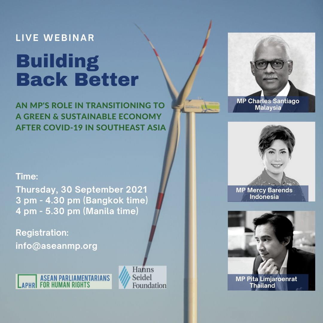 Olehnya, membangun kembali lebih baik merupakan peran para anggota DPRD dalam transisi ke ekonomi hijau dan berkelanjutan setelah covid 19 khususnya di kawasan Asia Tenggara.