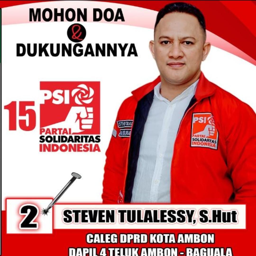 Mohon doa dan Dukungannya Bro Steven Tulalessy, S.Hut Nomor Urut 2 Partai PSI Caleg DPRD Kota Ambon Dapil 4 Kecamatan Baguala dan Teluk Ambon.