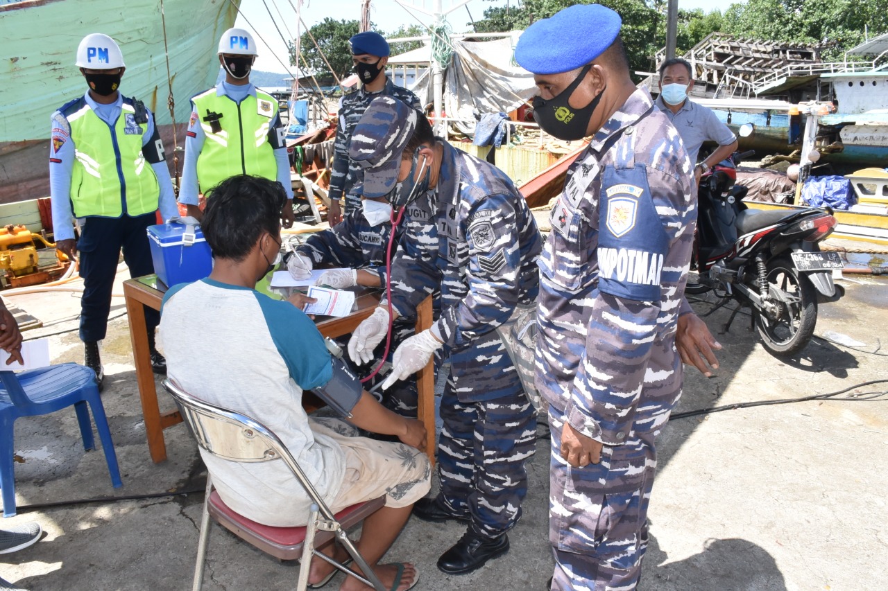 TNI Angkatan Laut. Nelayan dan warga pesisir terus menjadi sasaran serbuan vaksinasi covid-19 bagi masyarakat maritim yang dilaksanakan oleh TNI AL Lantamal IX, yang kali ini dilaksanakan di Negeri Laha Ambon. Minggu, (29/08/2021).