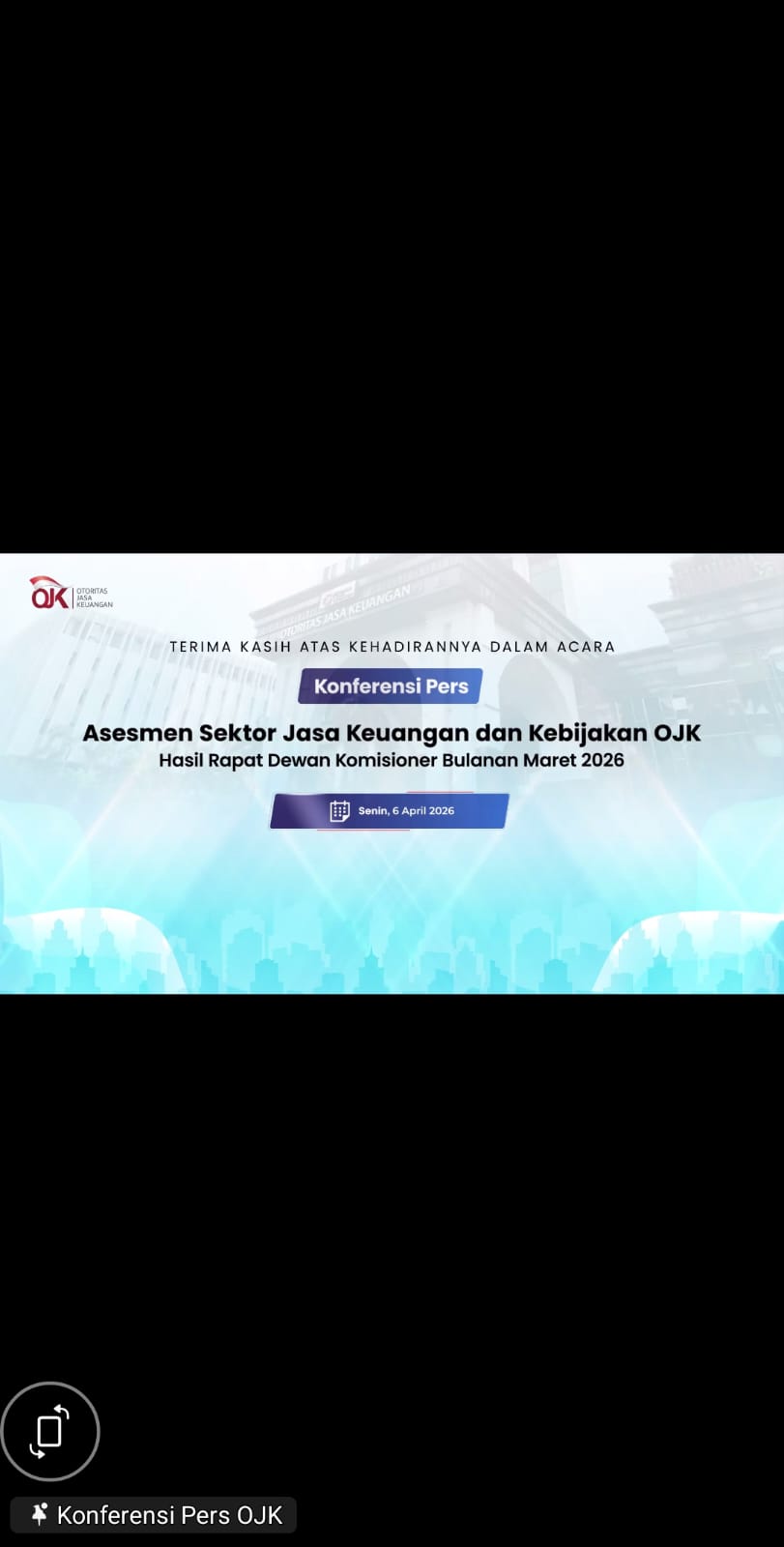 Otoritas Jasa Keuangan (OJK) akan menyelenggarakan Konferensi Pers Hasil Rapat Dewan Komisioner Bulanan (RDKB) Maret 2026 pada Senin, 6 April 2026, pukul 09.00 hingga 11.00 WIB. Kegiatan ini dilakukan secara daring melalui Zoom Meeting dan terbuka bagi media untuk meliput perkembangan terkini sektor jasa keuangan di Indonesia.