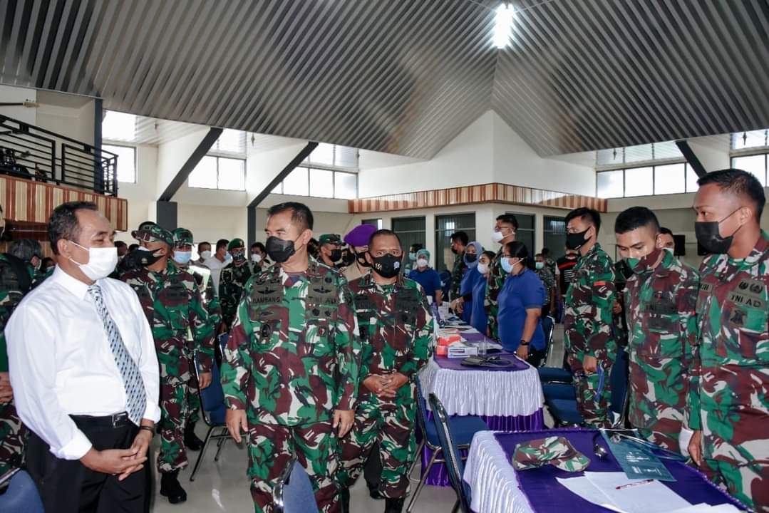 Malukuexpress.com, Pangdam XVI/ Pattimura, Mayjen TNI Bambang Ismawan, S.E, M.M berkesempatan menghadiri dan memberikan motivasi peserta vaksinasi massal yang bertempat di student center Unpatti, Jumat , (27/08/2021).