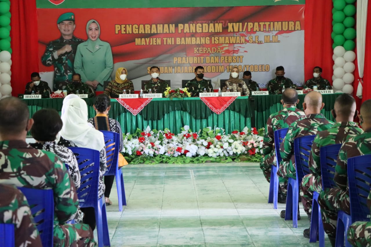 Turut hadir dalam pengarahan tersebut Ketua Persit KCK PD XVI/Pattimura Ny. Shintawati Ismawan, Pju Kodam XVI/Pattimura, Pju Korem 152/Baabullah, Dandim 1508/Tobelo Letkol Inf I Putu Witharsana Eka Putra, para Perwira jajaran Kodim 1508/Tbl, personel Ba dan Ta jajaran Kodim 1508/Tbl serta Persit KCK Kodim 1508/Tbl. (WYU-1508)