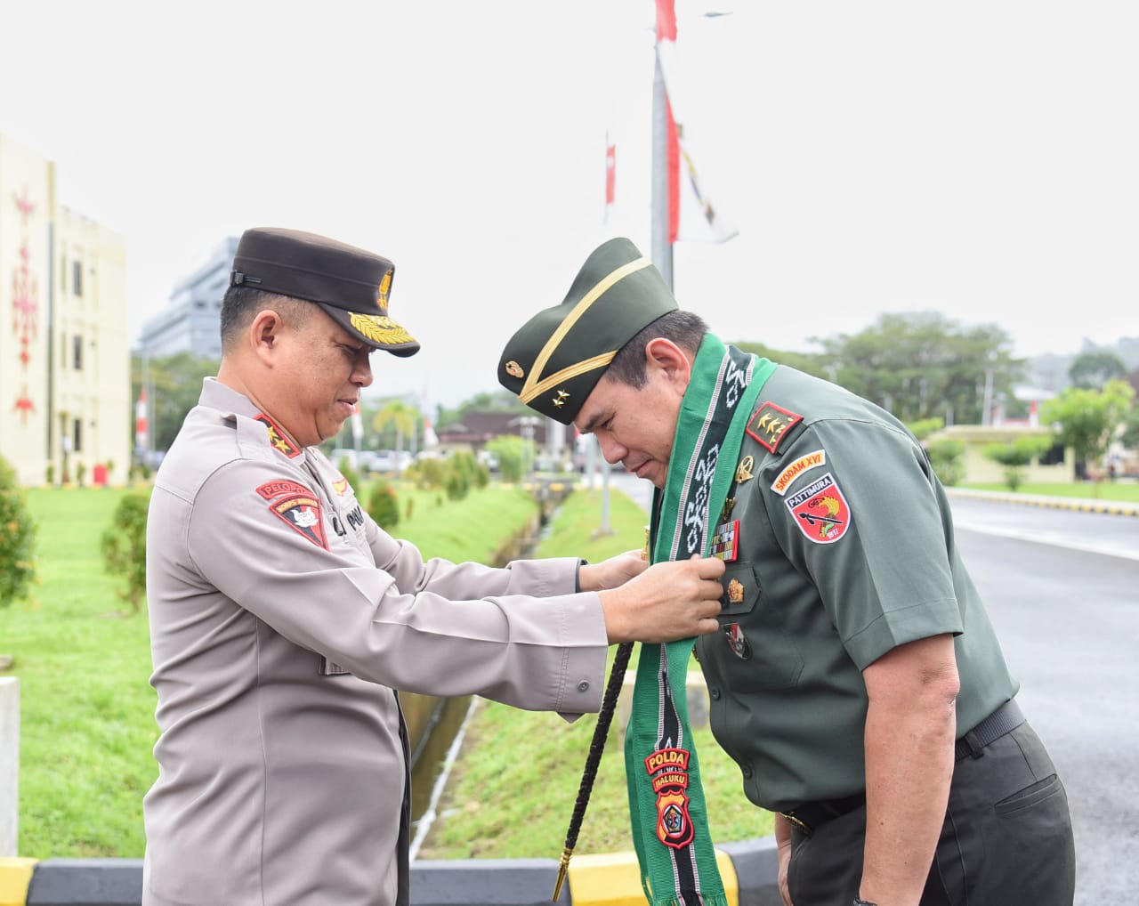 Setelah silaturahmi, Kapolda Maluku dan Pangdam XVI/Pattimura, kemudian saling bertukar pelakat sebagai kenang-kenangan. (*