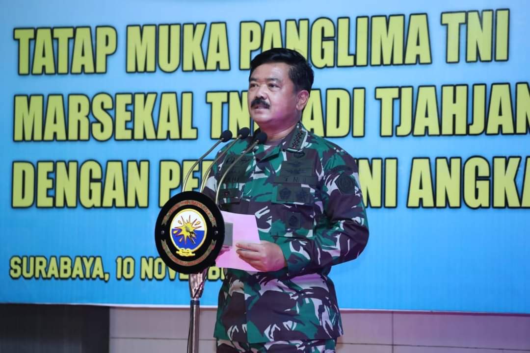 Malukuexpress.com, (Puspen TNI). Panglima TNI Marsekal TNI Hadi Tjahjanto, S.I.P., dan Kepala Staf Angkatan Laut (Kasal) Laksamana TNI Yudo Margono, S.E., M.M. melaksanakan tatap muka dengan para Prajurit TNI AL diatas KRI Makassar-590 yang sedang sandar di Dermaga Madura Koarmada II, Surabaya, Rabu (10/11/2021).
