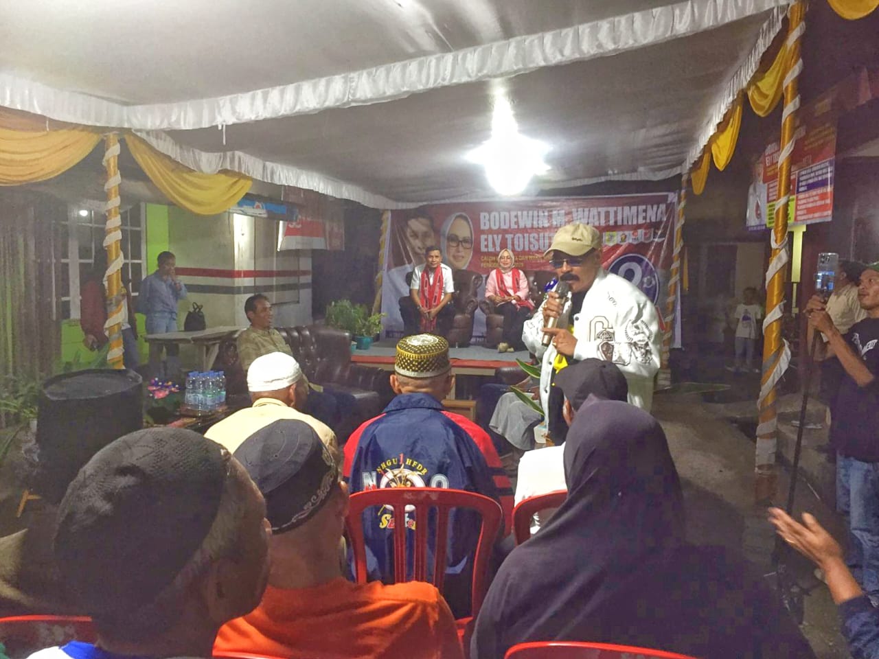 “Terima kasih bagi basudara yang ada Nania. Seluruh program yang kami tawarkan merupakan kontrak politik yang akan kita kerjakan saat terpilih nanti. Jadi bapak ibu tidak perlu ragu, karena Beta (saya) dan Ibu Ely memiliki track record yang baik. Kami sudah punya pengalaman dan teruji. Jadi jangan salah pilih. Pilih pasangan BETA Par Ambon nomor urut 2,” Ujar Bodewin.