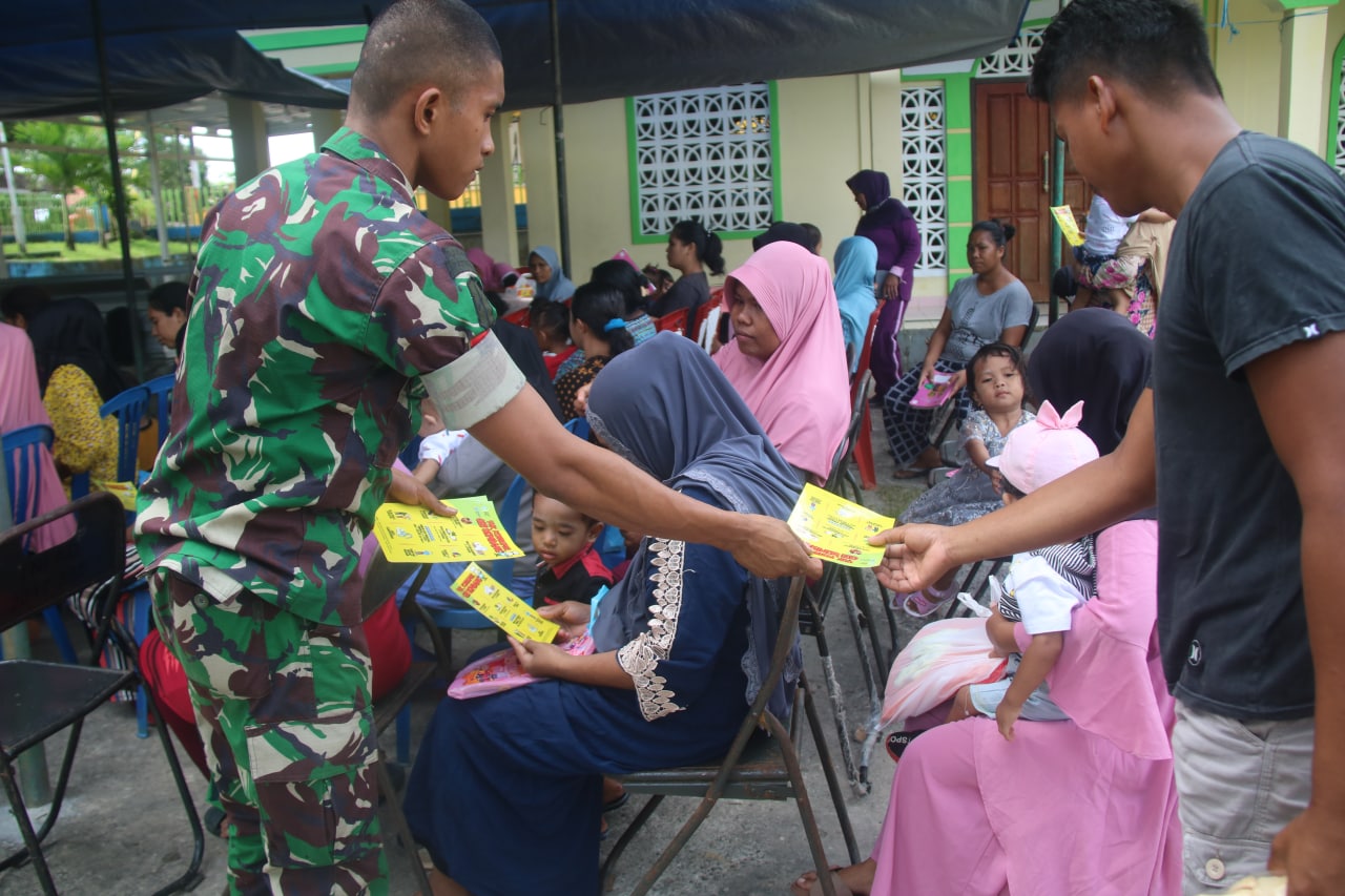 Malukuexpress.com, Prajurit Yonif Raider 733/ Masariku melaksanakan kegiatan karya bakti pembersihan tempat ibadah dan bakti sosial berupa penyuluhan stunting dan pengecekan kesehatan untuk anak- anak usia 1 hingga 5 tahun, bertempat di Kampung Taheno, Ambon, Maluku, Sabtu (29/10/2022).