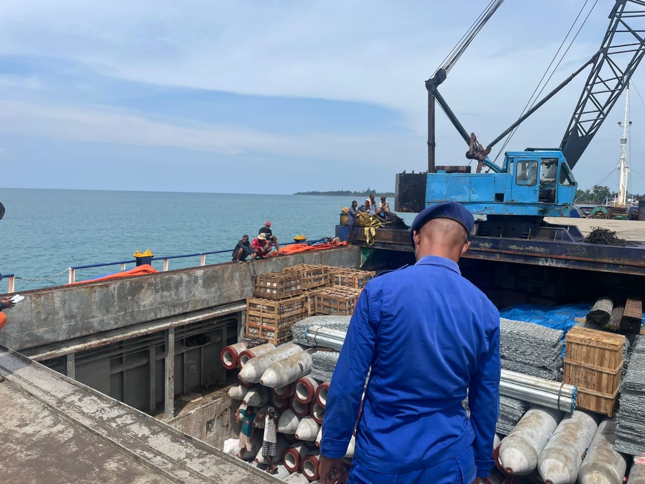 “Dengan menggunakan KP.XVI-2005 Personil Ditpolairud Polda Maluku yang bertugas pada Pos Sandar Kobisadar Kec. Seram Utara Timur – Kobi. Kab. Maluku Tengah melaksanakan tugas pengawasan dan pemeriksaan terhadap aktifitas bongkar-muat barang untuk memastikan tidak terjadi kecelakaan kerja pada saat menaikan dan menurunkan muatan dan juga tidak terjadi over kapasitas muatan Kapal, kata Kombes Pol Handoyo Santoso, Direktur Polairud Polda Maluku”