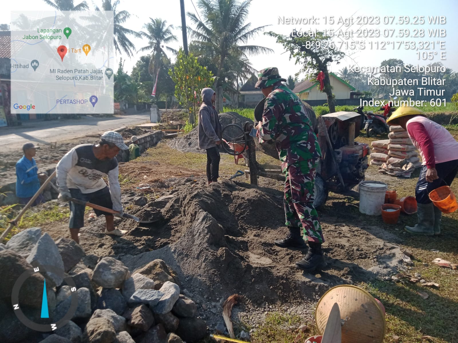 MALUKUEXPRESS.COM, Blitar – Babinsa Pos Selopuro Koramil 0808/12 Wlingi Kodim 0808/Blitar Sertu Dwi Setiyo, anggota Pos Selopuro dan warga masyarakat, melaksanakan kegiatan kerja bakti dan gotong royong bersama, untuk membangun parit sepanjang kurang lebih 500 meter, bertempat di Desa Popoh Kec. Selopuro Kab. Blitar, Selasa (15/8/2023).