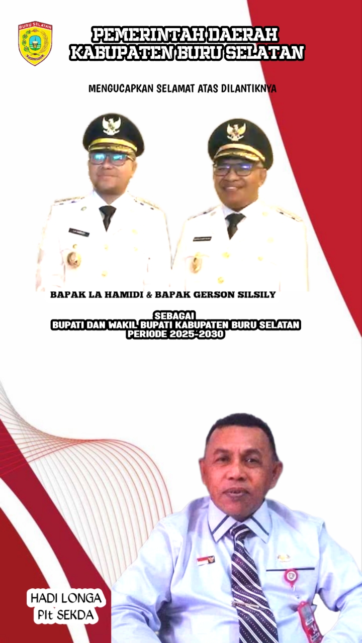 Pemda Buru Selatan Mengucapkan Selamat Atas Dilantikanya Bupati dan Wakil Bupati Kabupaten Buru Selatan Periode 2025 – 2030 Bapak La Hamidi dan Bapak Gerson Silsily
