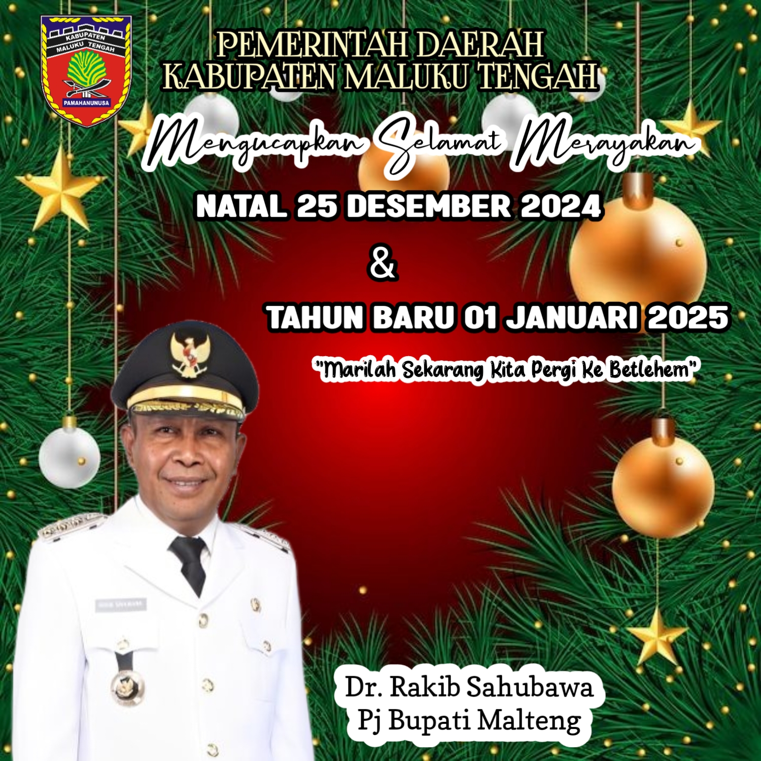 Pemda Maluku Tengah Mengucapkan Selamat Merayakan Natal 25 Desember 2024 dan Tahun Baru 01 Januari 2025. adminDesember 2, 2024348 Dilihat Post Views: 348 Pos terkaitAMGPM Oikumene Imanuel OSM Resmi Dari Gedung Baru Menuju Gerakan Perubahan NyataTim “Dara Laut” Kowal Kodaeral IX Meriahkan Opening Ceremony Salam Fest 2026Perkuat Pengamanan Perairan Timur, Pesawat Patroli Maritim TNl AL P-8301 Tiba di AmbonKONI Ambon Diingatkan: Jangan Sekadar Formalitas, Atlet Berbakat Harus Jadi Prioritas100 Personel Brimob Dilatih Tangani Kerusuhan, Kapolda Maluku Tekankan Profesionalisme dan Pendekatan HumanisKursi Sekot Jadi Sorotan, Wali Kota Minta Publik Jangan Terprovokasi