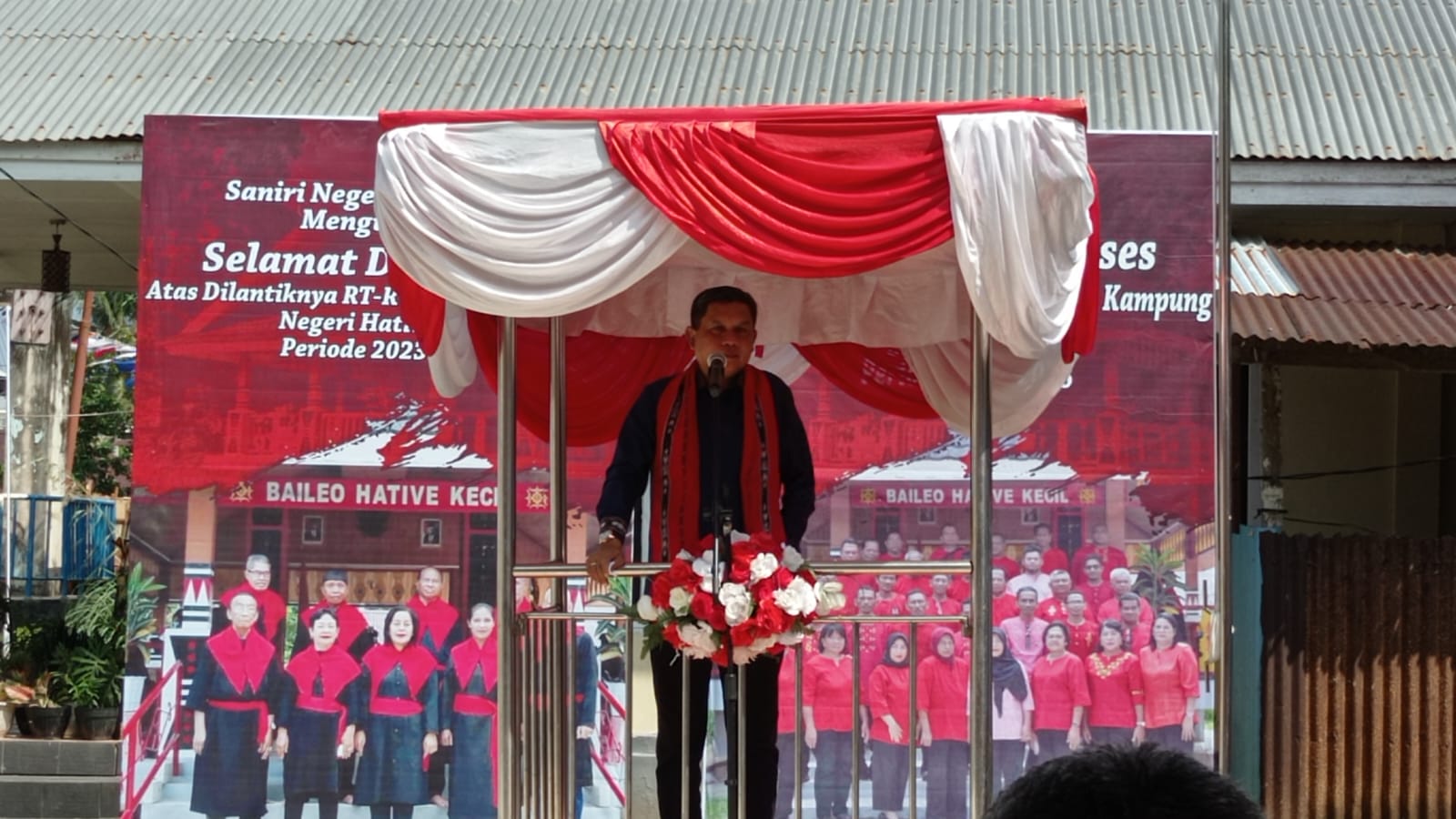 MALUKUEXPRESS.COM, Penjabat walikota Ambon Bodewin Wattimena menghadiri pelantikan RT/RW Negeri Hative Kecil, Sabtu (11/11/23).