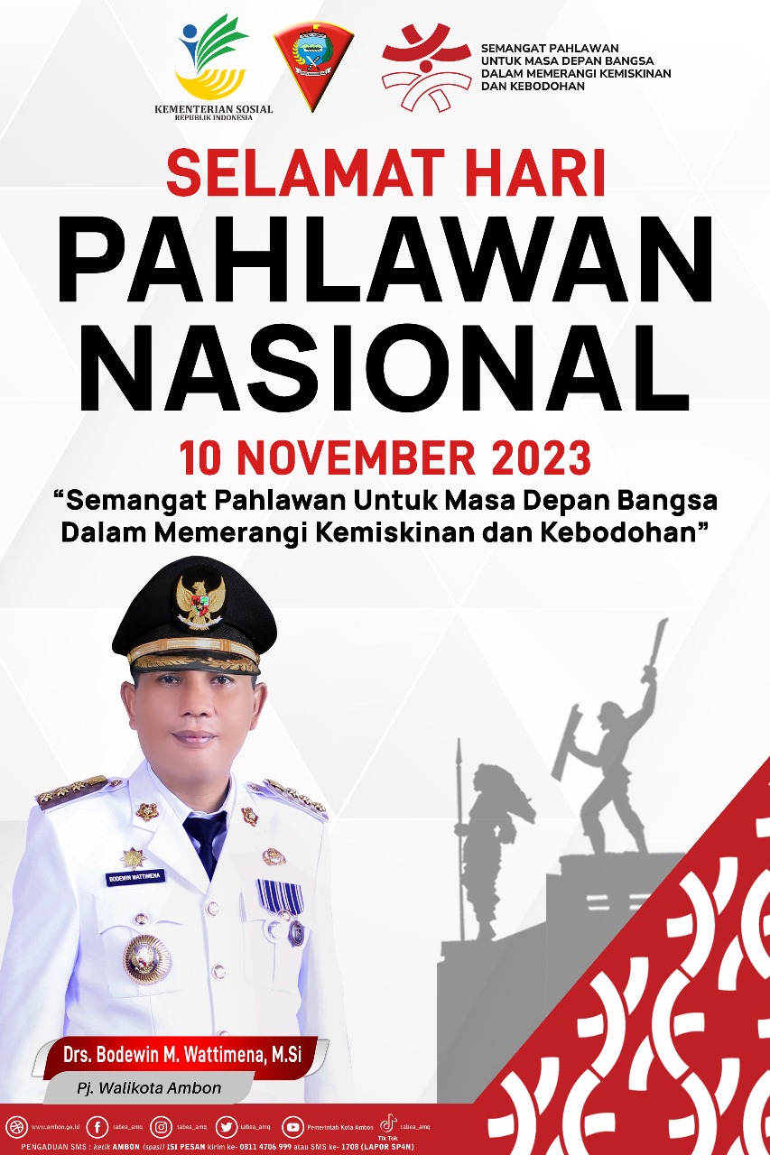 Penjabat Walikota Ambon Mengucapkan Selamat Memperingati Hari Pahlawan 10 November 2023 adminNovember 10, 2023Desember 17, 2023393 Dilihat Post Views: 393 Pos terkaitKRI Hampala-880 Sandar di Dermaga Tawiri Kodaeral IX Dukung Ops Perisai Sura-26Gerak Cepat Polisi, 2 Terduga Pelaku Penikaman Ketua DPD II Golkar Malra Berhasil Diamankan Polres Maluku TenggaraAMGPM Oikumene Imanuel OSM Resmi Dari Gedung Baru Menuju Gerakan Perubahan NyataDanrem 151/Bny Pimpin Sertijab Kasrem 151/BnyTim “Dara Laut” Kowal Kodaeral IX Meriahkan Opening Ceremony Salam Fest 2026Perkuat Pengamanan Perairan Timur, Pesawat Patroli Maritim TNl AL P-8301 Tiba di Ambon
