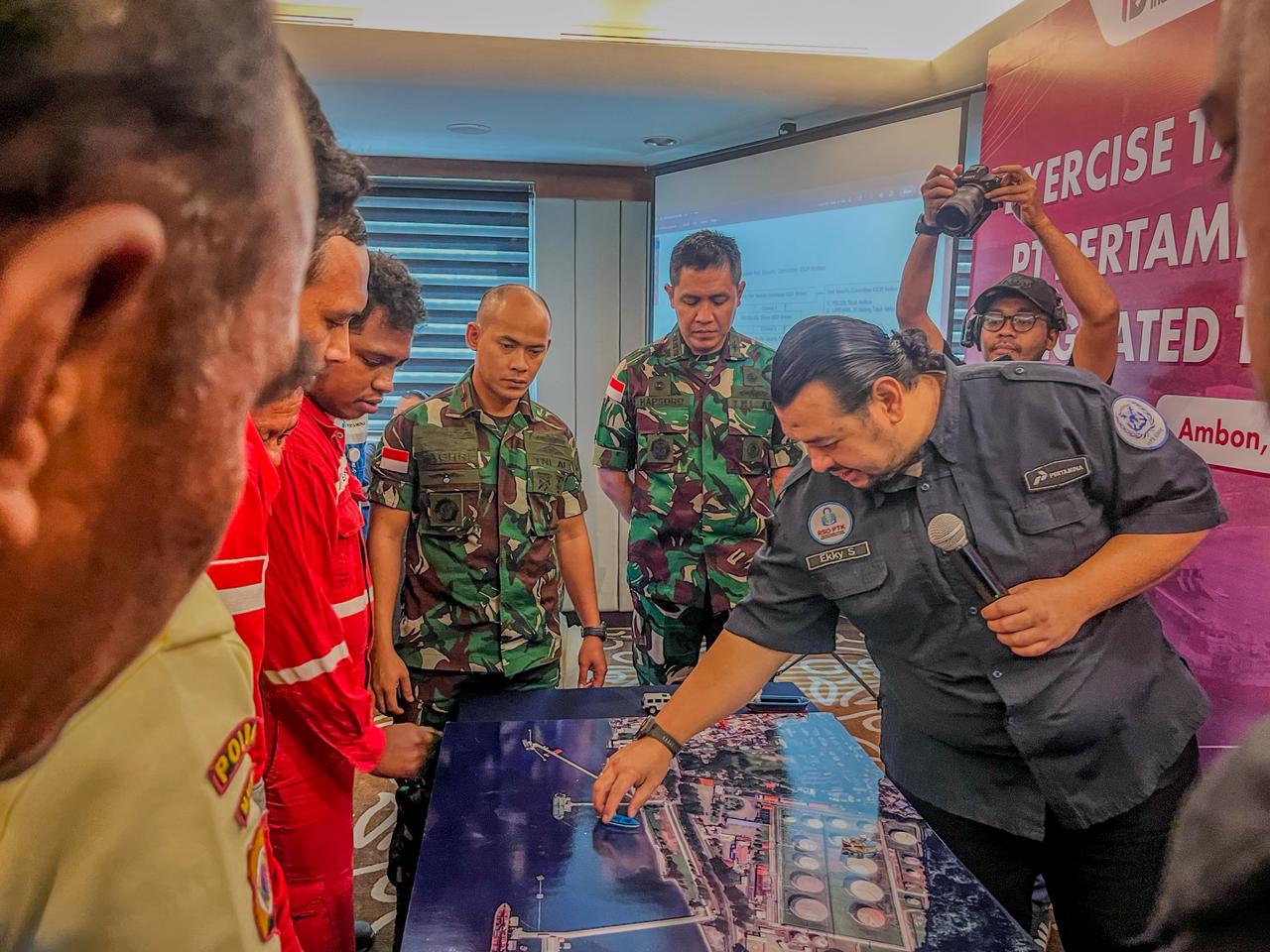 Sinergi ini menunjukkan komitmen kolektif dalam menjaga stabilitas keamanan distribusi energi nasional. Rangkaian diawali dengan registrasi dan pelaksanaan simulasi taktis. Setelah simulasi dilanjutkan penyusunan laporan yang kemudian disahkan melalui Approval Exercise Table Top Report oleh KSOP Kelas 1 Ambon.