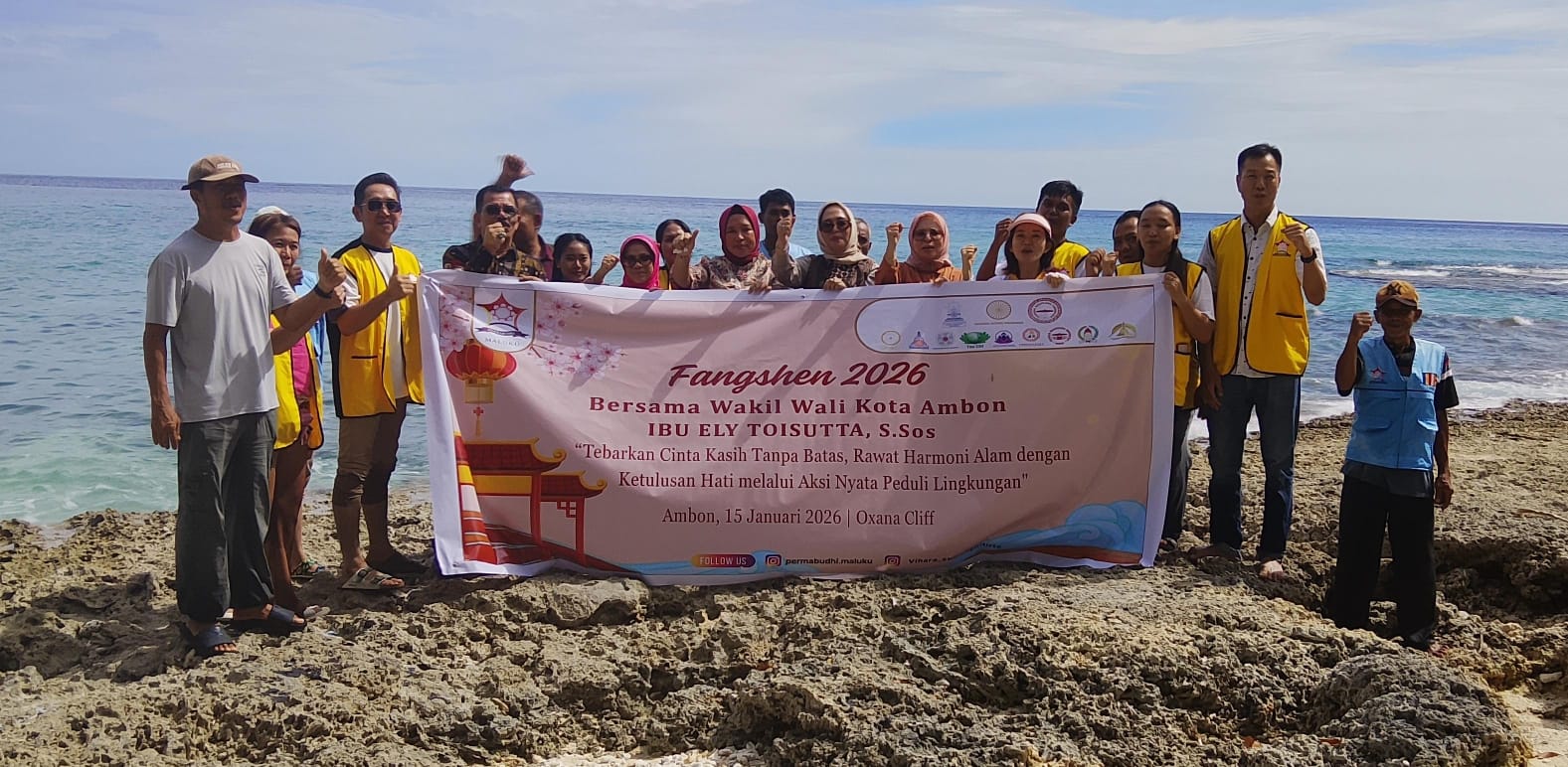 MALUKUEXPRESS.COM, Persatuan Umat Buddha Indonesia Maluku Melaksanakan Kegiatan Fangshen 2026 Bersama Wakil Walikota Ambon Ibu Elly Toisutta, S.Sos dengan sorotan tema “Taburkan Cinta Kasih Tanpa Batas, Aawat Harmoni Alam dengan Ketulusan Hati melalui Aksi Nyata Peduli Lingkungan”. Bertempat Di Tempat Wisata Oxana Cliff, Airlouw. Nusaniwe. Minggu 15 Februari 2025.
