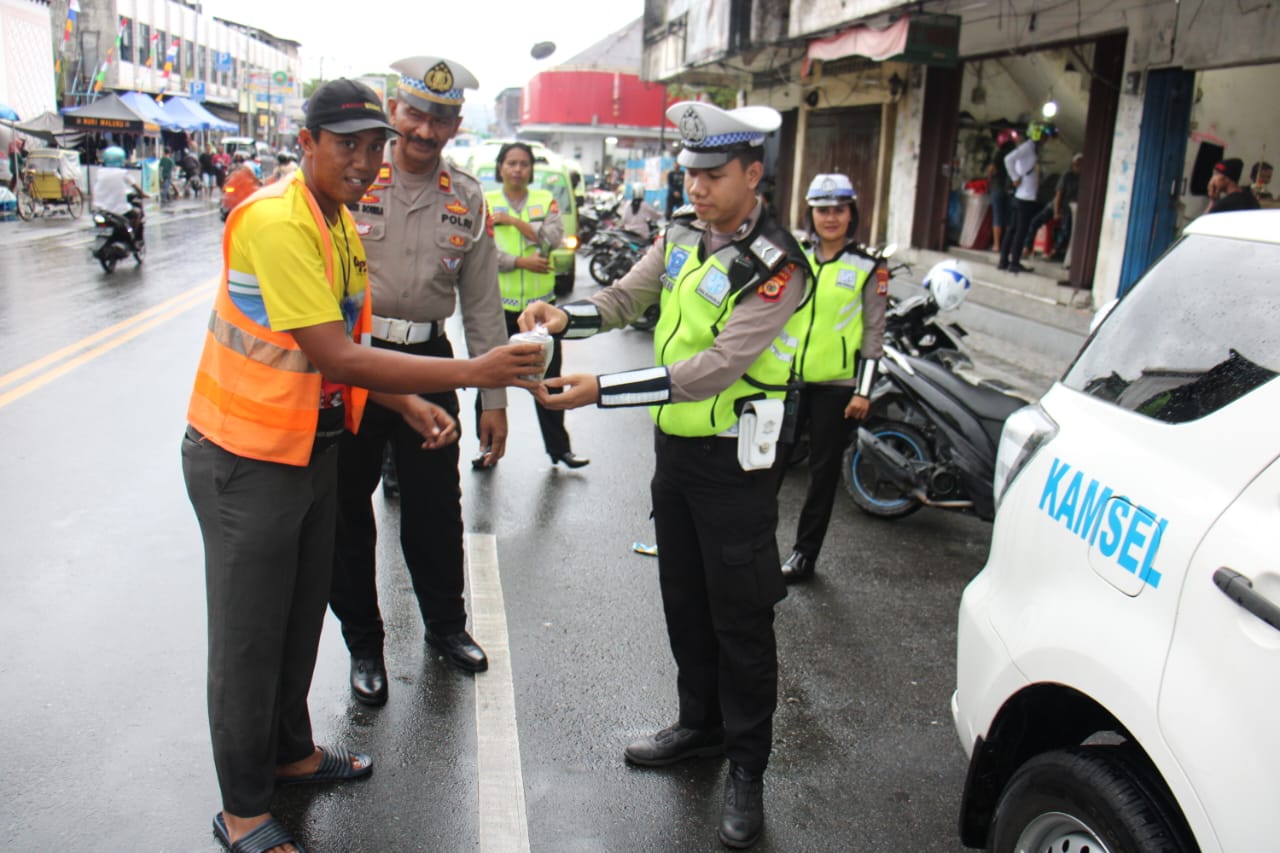 Malukuexpress.com, Polda Maluku- Personel Direktorat Lalulintas Polda Maluku menggelar pembagian takjil buka puasa gratis kepada para pengendara ojeg, Sopir Angkot dan penarik becak yang melintas di jalan depan Masjid Al Fatah Ambon pada selasa 28/3/2023.