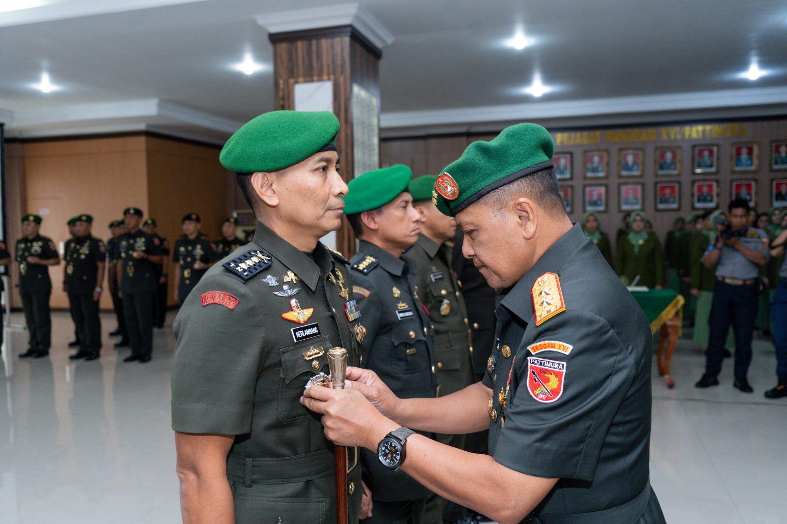 Pejabat yang diserah terimakan yaitu, Asintel Kasdam XVI/Pattimura yang sebelumnya dijabat oleh Kolonel Inf Herlambang Bayu Kusuma, S.E., M.Han., kini dijabat oleh Kolonel Kav Sindhu Hanggara, S.H., M.M., Kapendam XVI/Pattimura sebelumnya dijabat Kolonel Arh Adi Prayogo Choirul Fajar, S.E., kini dijabat oleh Letkol Arh Agung Sinaring Mahapasti, Dandenzipur 5/CMG sebelumnya dijabat Mayor Czi Frengka Daniel Siahaan, kini dijabat Mayor Czi Setiadi Wibowo sebagai Dandenzipur 5/CMG.