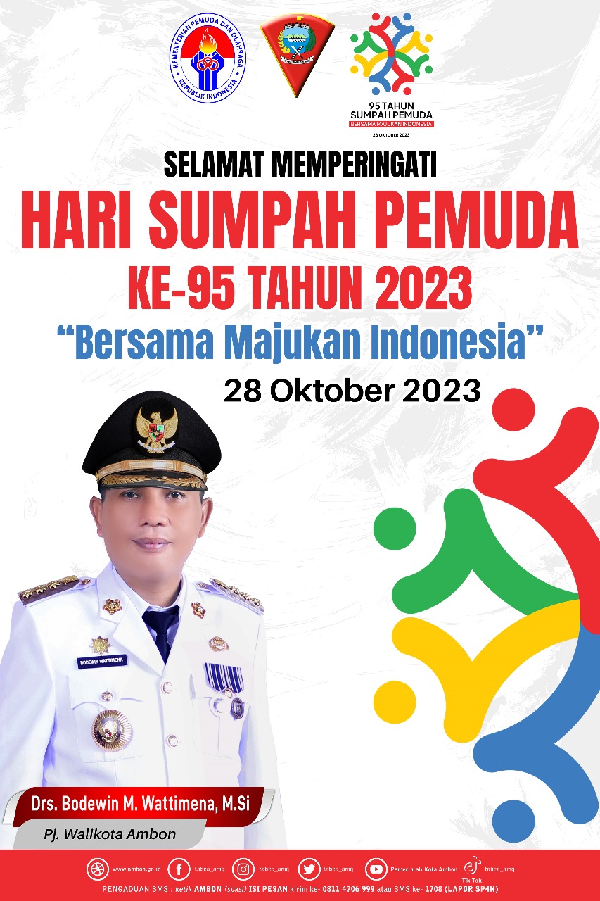 Pj Walikota Ambon Mengucapkan Selamat Hari Sumpah Pemuda 28 Oktober 2023 adminOktober 28, 2023Desember 17, 2023319 Dilihat Post Views: 319 Pos terkait“Dari Halal Bihalal, Lahir Kekuatan Baru!” Alumni Universitas Muslim Indonesia di Ambon Gaspol Bentuk IKA UMI MalukuKRI Hampala-880 Sandar di Dermaga Tawiri Kodaeral IX Dukung Ops Perisai Sura-26Gerak Cepat Polisi, 2 Terduga Pelaku Penikaman Ketua DPD II Golkar Malra Berhasil Diamankan Polres Maluku TenggaraAMGPM Oikumene Imanuel OSM Resmi Dari Gedung Baru Menuju Gerakan Perubahan NyataDanrem 151/Bny Pimpin Sertijab Kasrem 151/BnyTim “Dara Laut” Kowal Kodaeral IX Meriahkan Opening Ceremony Salam Fest 2026