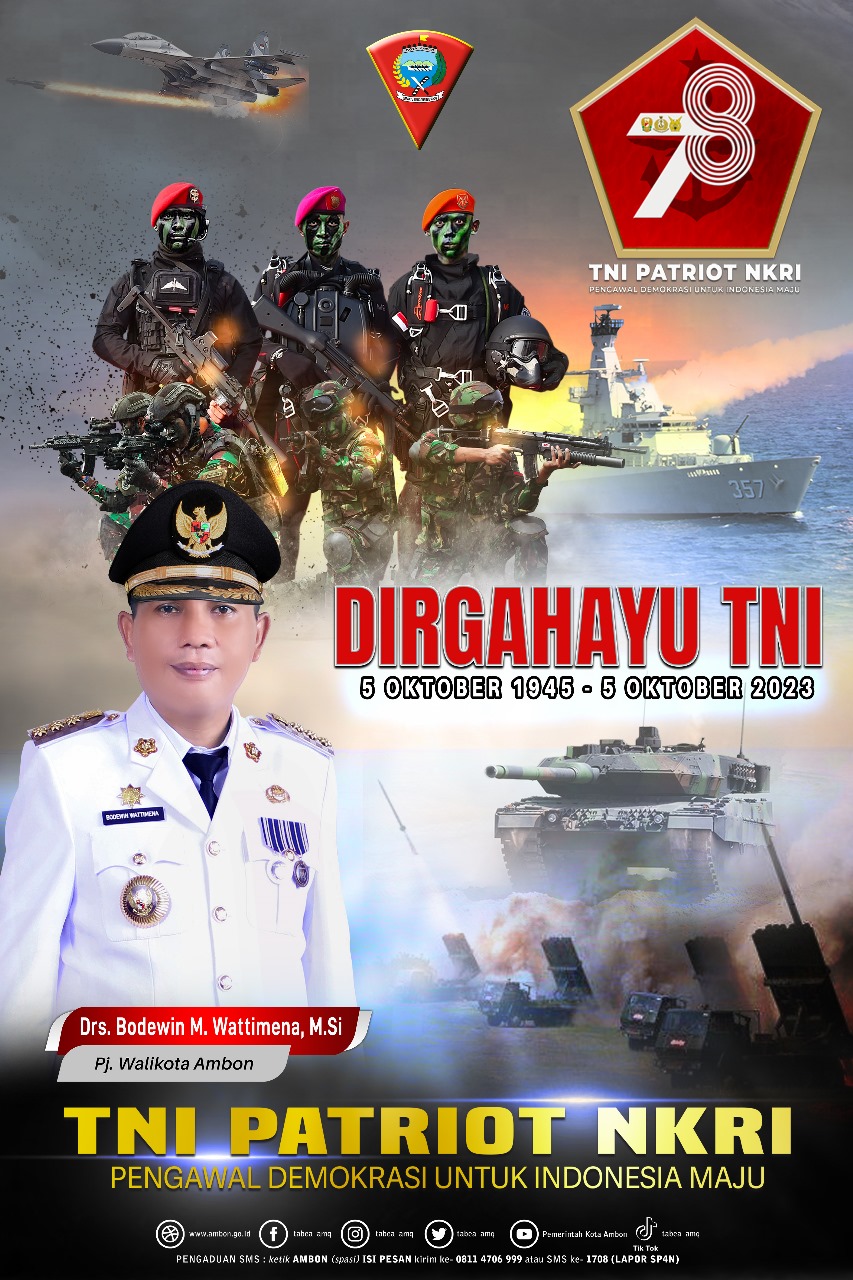Pj Walikota Ambon Mengucapkan Selamat HUT TNI 05 Oktober 2023 adminOktober 5, 2023Desember 17, 2023243 Dilihat Post Views: 243 Pos terkaitKRI Hampala-880 Sandar di Dermaga Tawiri Kodaeral IX Dukung Ops Perisai Sura-26Gerak Cepat Polisi, 2 Terduga Pelaku Penikaman Ketua DPD II Golkar Malra Berhasil Diamankan Polres Maluku TenggaraAMGPM Oikumene Imanuel OSM Resmi Dari Gedung Baru Menuju Gerakan Perubahan NyataDanrem 151/Bny Pimpin Sertijab Kasrem 151/BnyTim “Dara Laut” Kowal Kodaeral IX Meriahkan Opening Ceremony Salam Fest 2026Perkuat Pengamanan Perairan Timur, Pesawat Patroli Maritim TNl AL P-8301 Tiba di Ambon