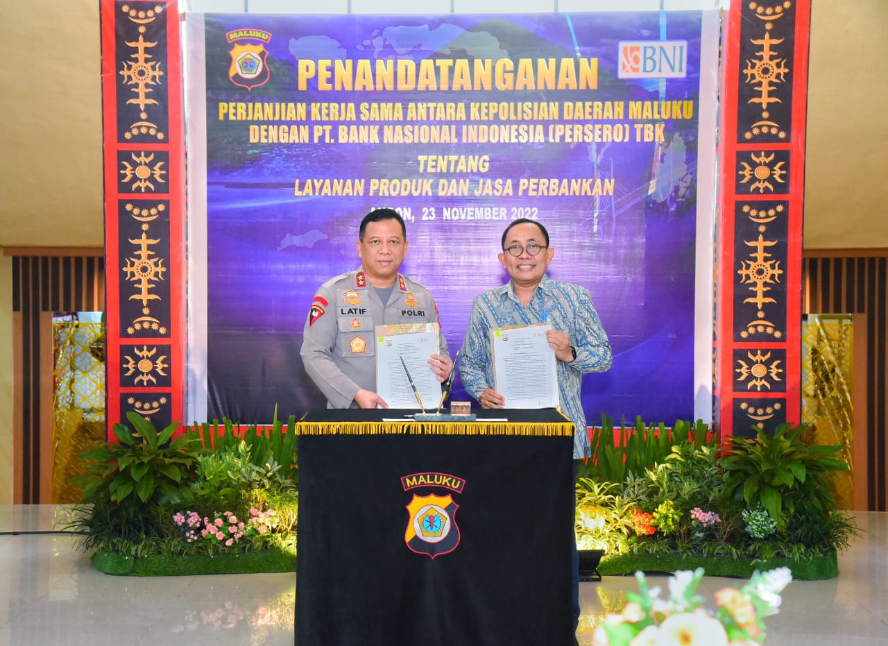 Kesepakatan kerjasama yang berlangsung di Kantor Polda Maluku ini ditandatangani langsung oleh Kapolda Maluku Irjen Pol Lotharia Latif dan Kepala BNI Ambon, Friedson WNK.
