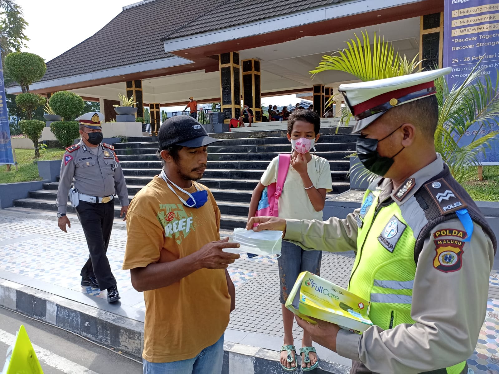 Selain memberikan sosialisasi terkait keselamatan di jalan raya, aparat gabungan Polda Maluku ini juga terus mengingatkan masyarakat akan pentingnya penerapan protokol kesehatan covid-19, seperti memakai masker.
